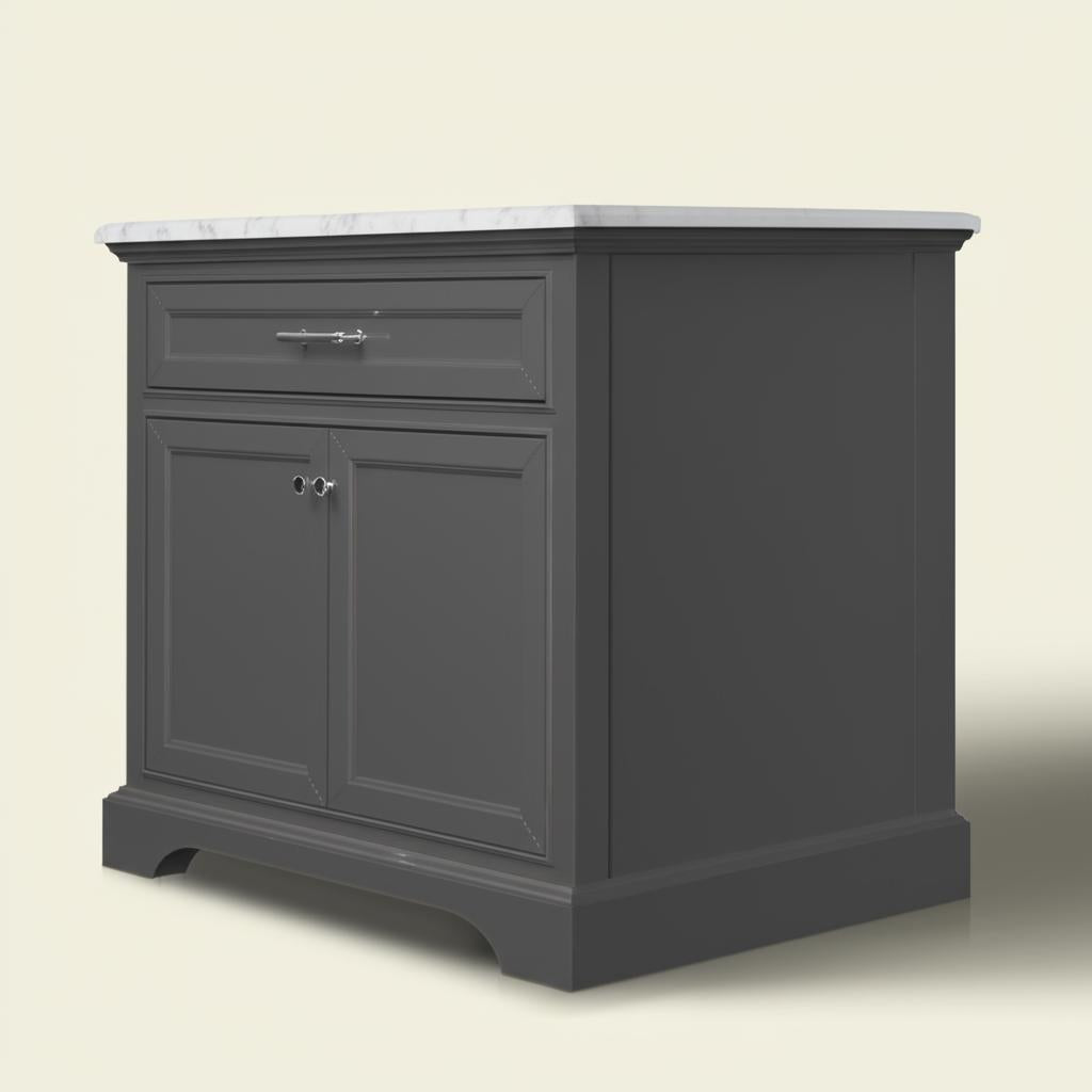 Transform your bathroom into a sanctuary of style with the Windlowe Bath Vanity. Its Carrara marble top exudes timeless elegance, while the soft-close doors and brushed nickel hardware add a touch of modern sophistication. Pair it with minimalist decor to highlight its sleek gray finish, or complement it with bold accents for a striking contrast. This vanity is not just a functional piece but a statement of luxurious living.