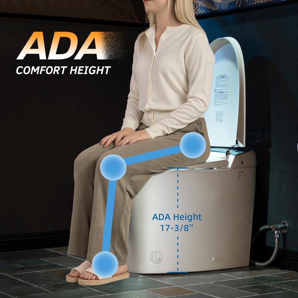 Discover ultimate convenience and luxury with the WOODBRIDGE Elongated ADA Smart Bidet Toilet. Designed to offer a fully hands-free experience, this toilet combines advanced features like auto-open and flush, a foot sensor, and UV water sterilization, while promising comfort with its ADA-compliant chair height.