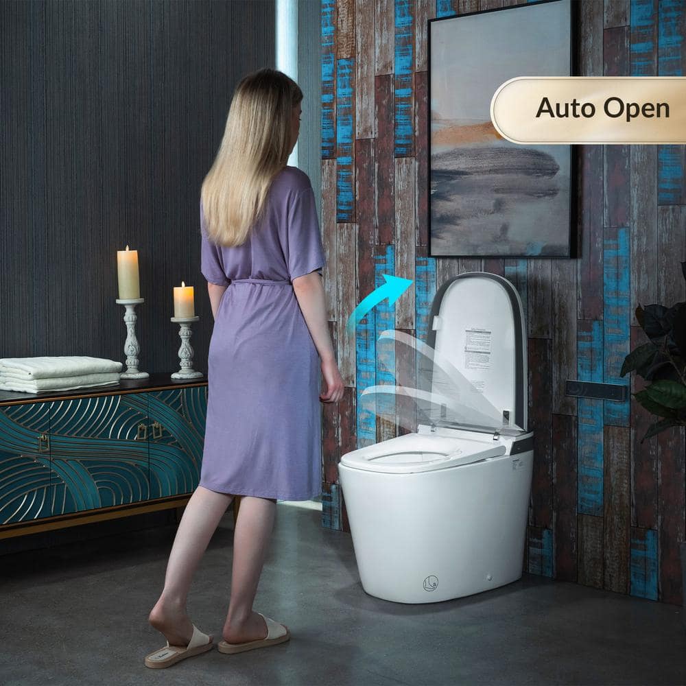 Smart Sensor Auto Features: Hands-free lid and flush activation for hygienic use.