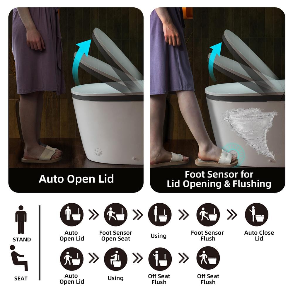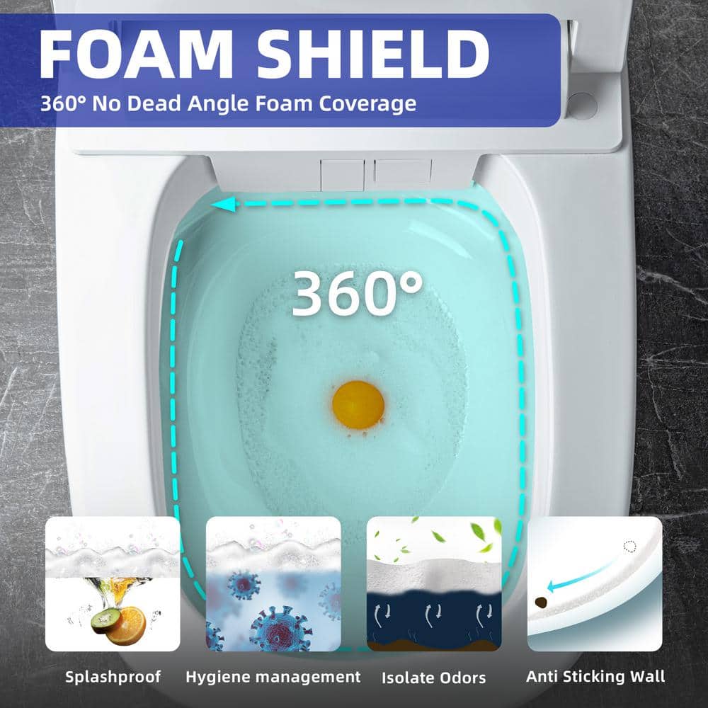 The WOODBRIDGE Elongated ADA Smart Bidet Toilet revolutionizes your bathroom with its advanced features. This modern toilet offers a no-touch experience with automatic lid opening and a foot sensor for seamless control, while the foam shield minimizes splashes and odors for a clean, comfortable environment. Experience unparalleled comfort with the integrated heated seat and UV sterilization for ultimate hygiene.