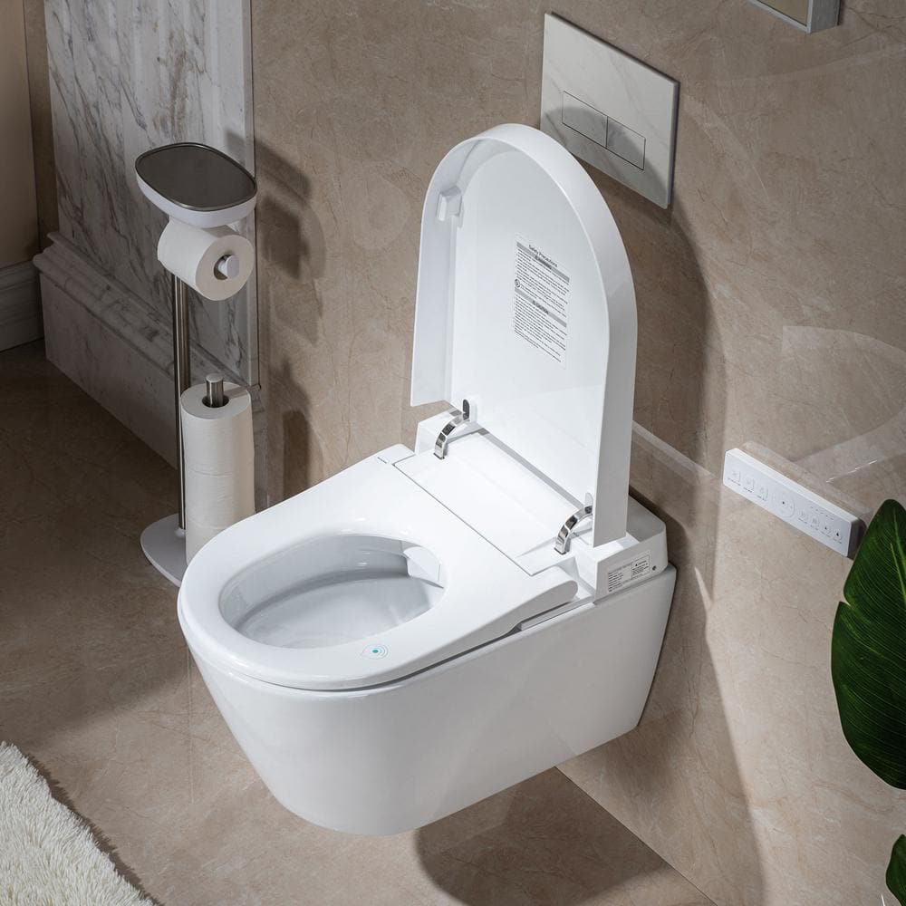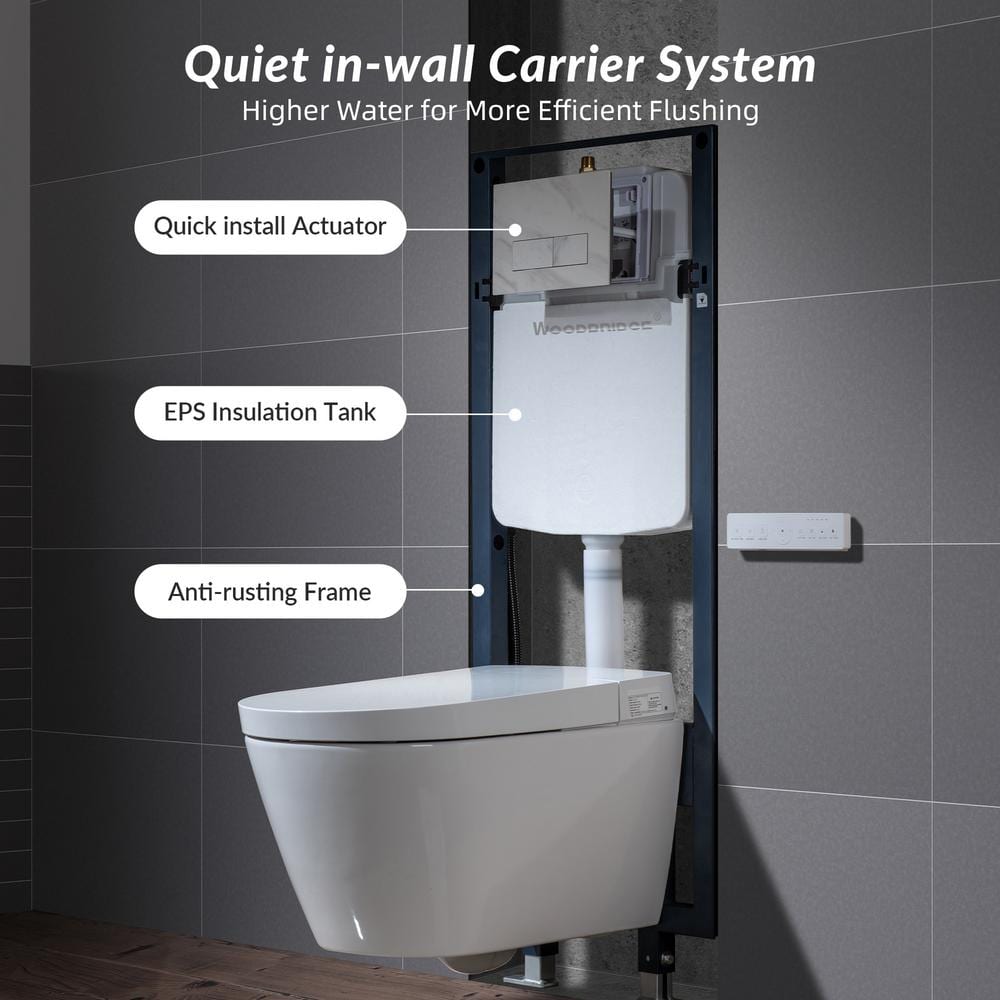 Upgrade your bathroom with the WOODBRIDGE Wall Hung Smart Toilet, featuring a sleek, space-saving design. This elegant fixture boasts a dual flush system and smart bidet functionalities, transforming your space into a modern sanctuary. The concealed tank and deluxe marble flush plates elevate both style and cleanliness.