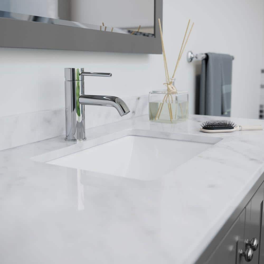 - Elegant Design: White Carrara marble top with a sleek, flat edge.
