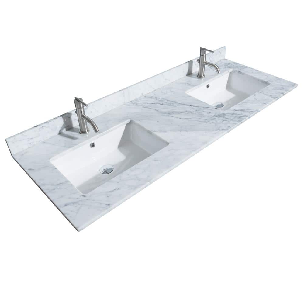 Wyndham Collection 60 in. Marble Double Basin Vanity Top with White Carrara Finish