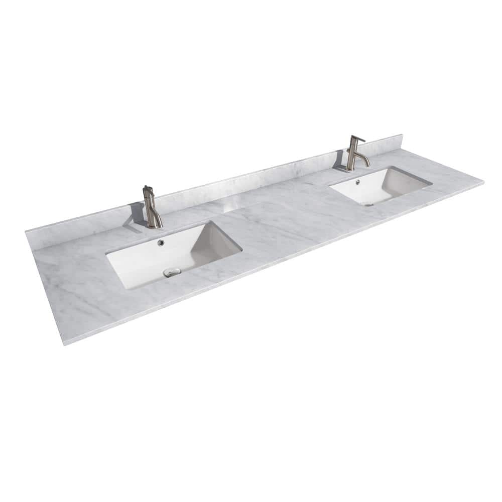 Wyndham Collection 80 in. Marble Double Basin Vanity Top with White Carrara Finish