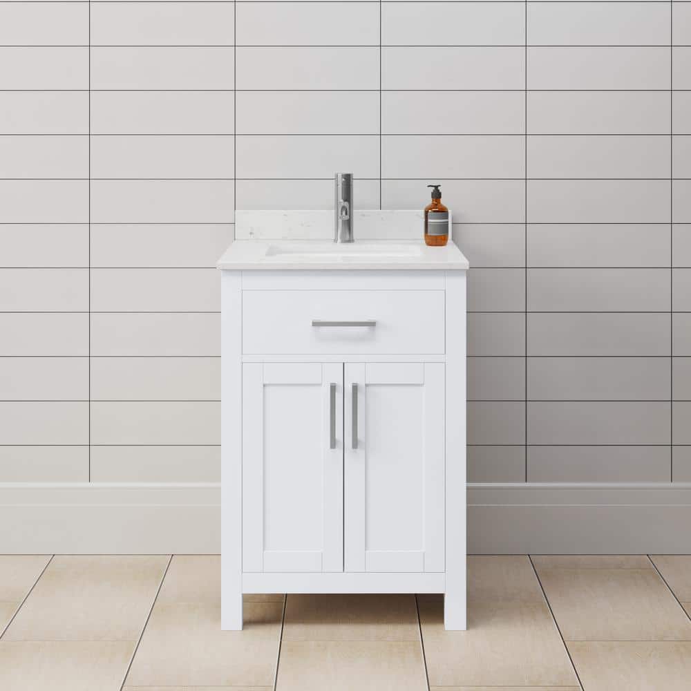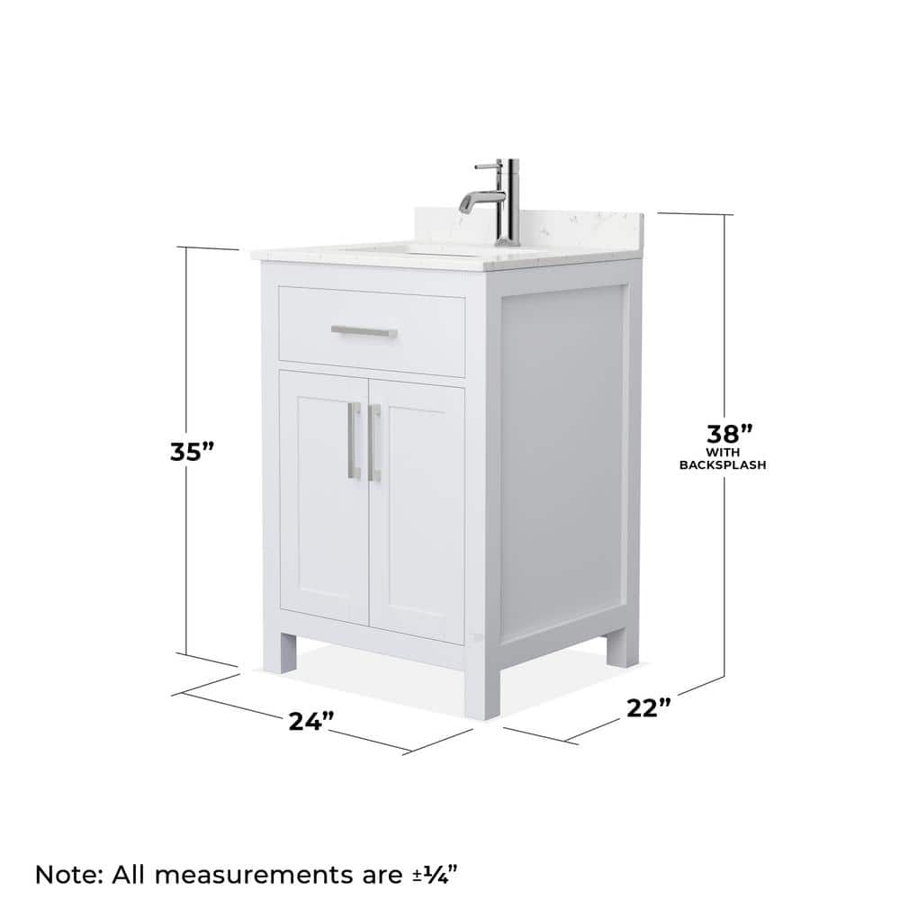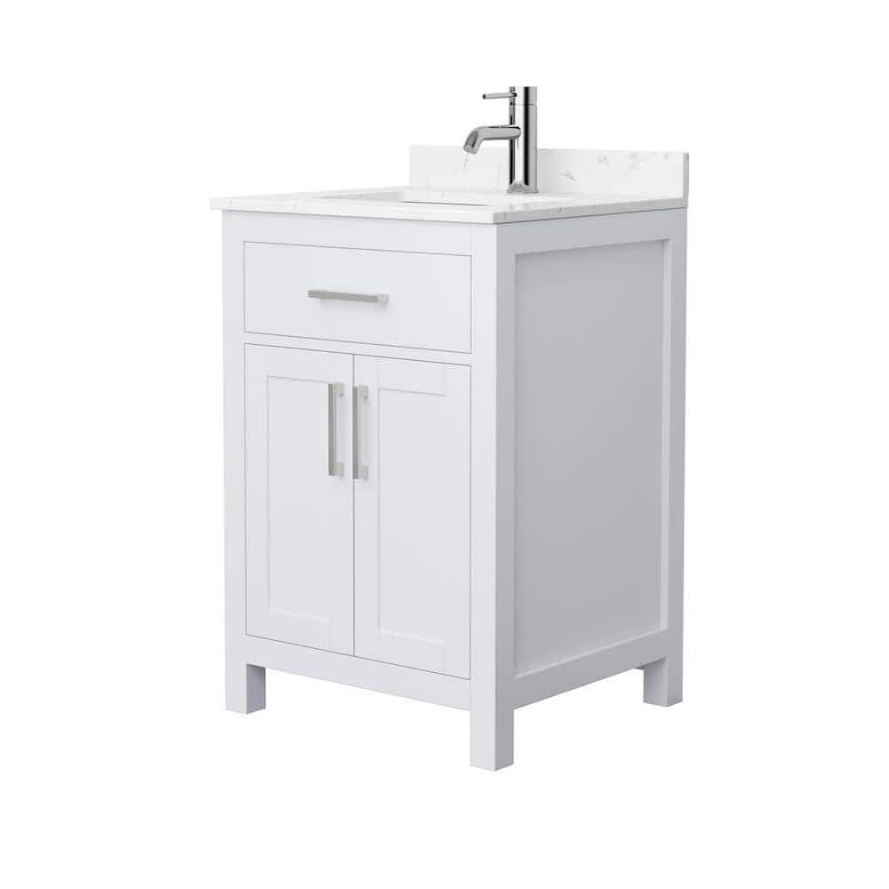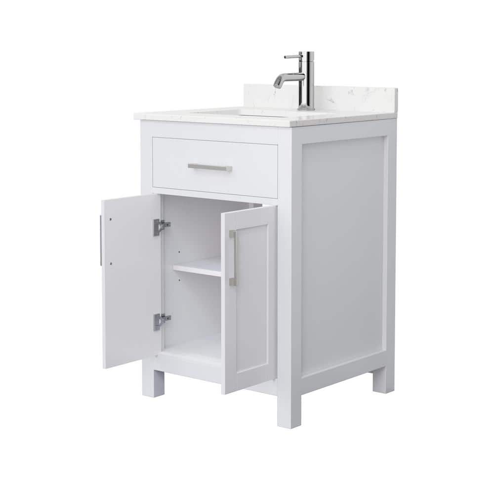 The Wyndham Collection Beckett 24" Single Bath Vanity combines timeless design with modern functionality. Featuring a Carrara cultured marble top and a durable wood cabinet, it offers ample storage and a sleek, transitional style.