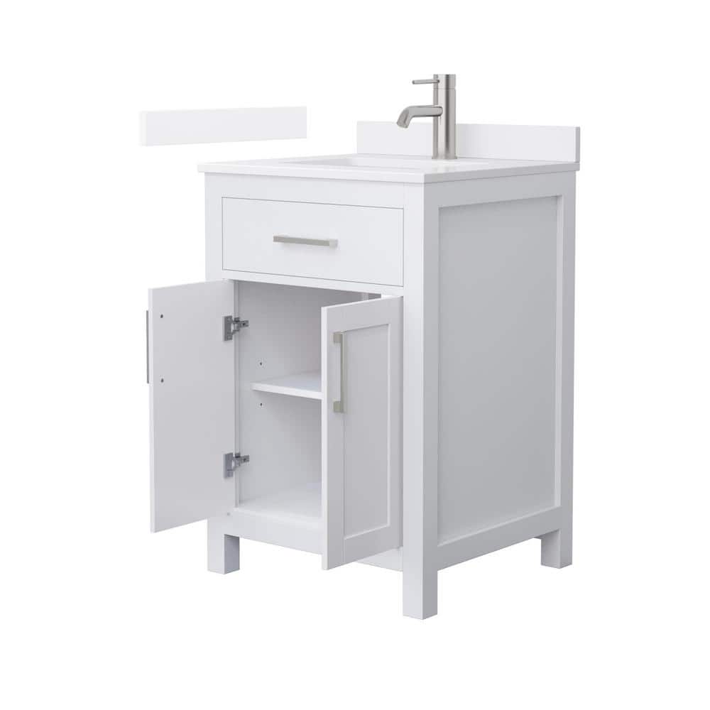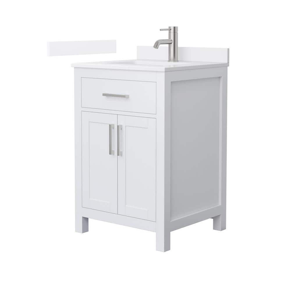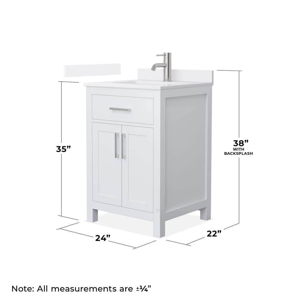 The Wyndham Collection Beckett 24" Freestanding White Bath Vanity combines timeless design with modern functionality. Featuring a white quartz top, soft-close doors, and ample storage, this vanity is perfect for any bathroom upgrade.