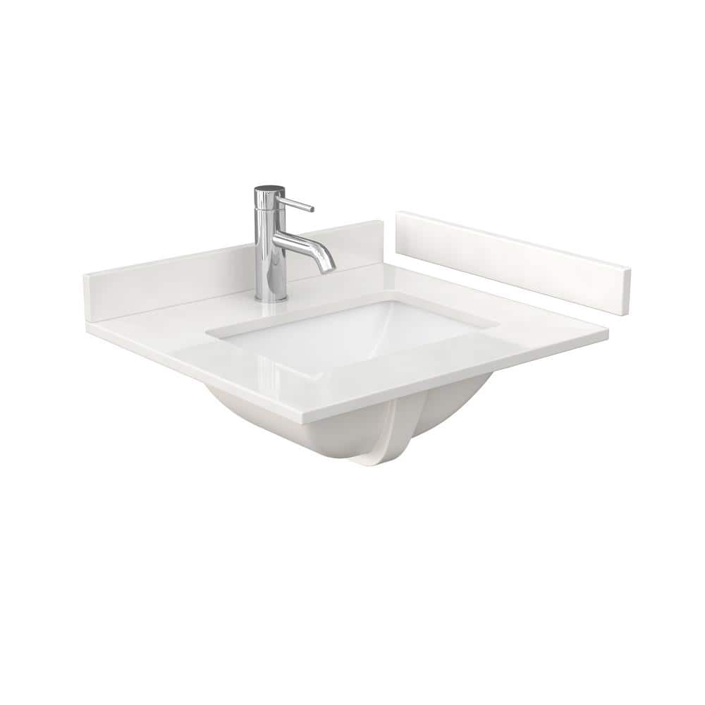 - Premium Countertop: White quartz top with backsplash and sidesplash.