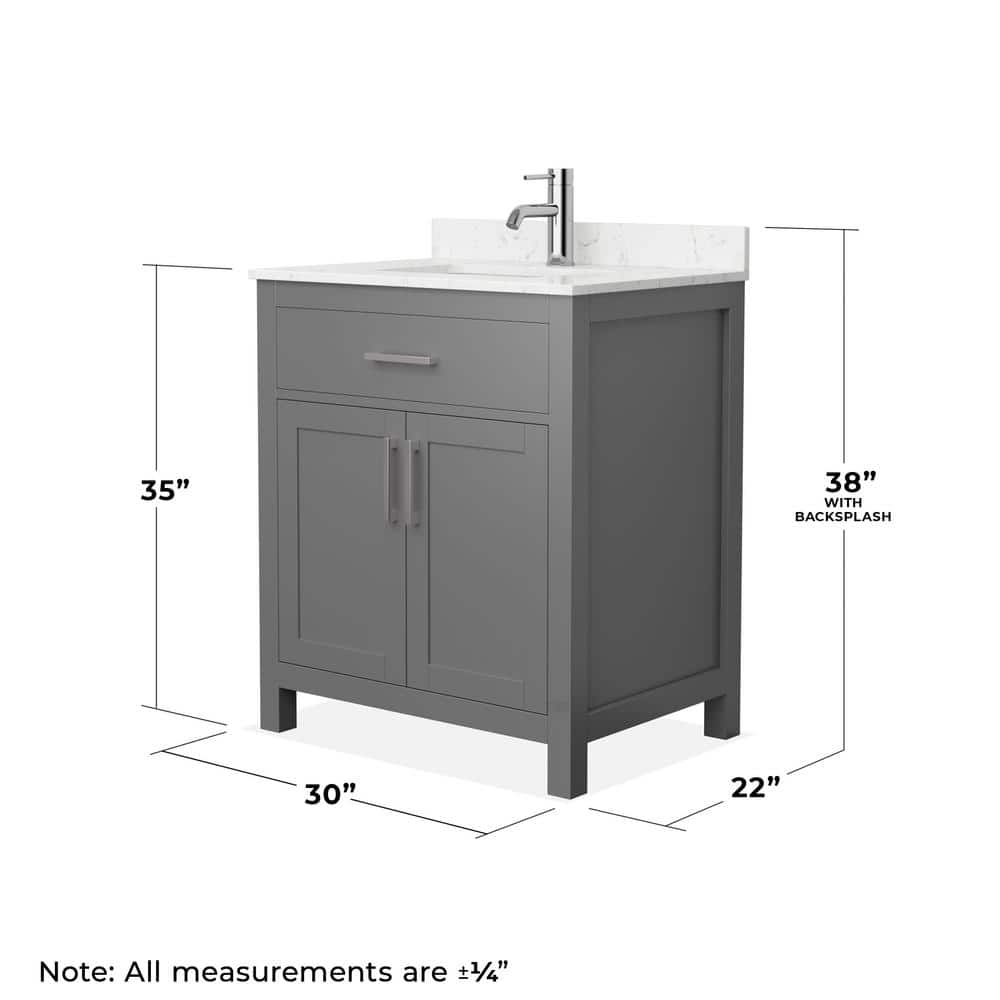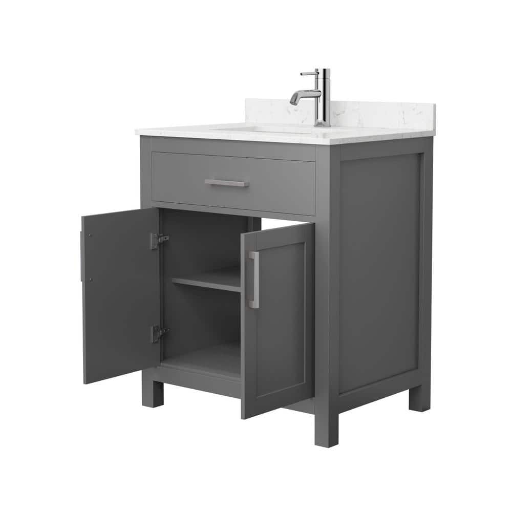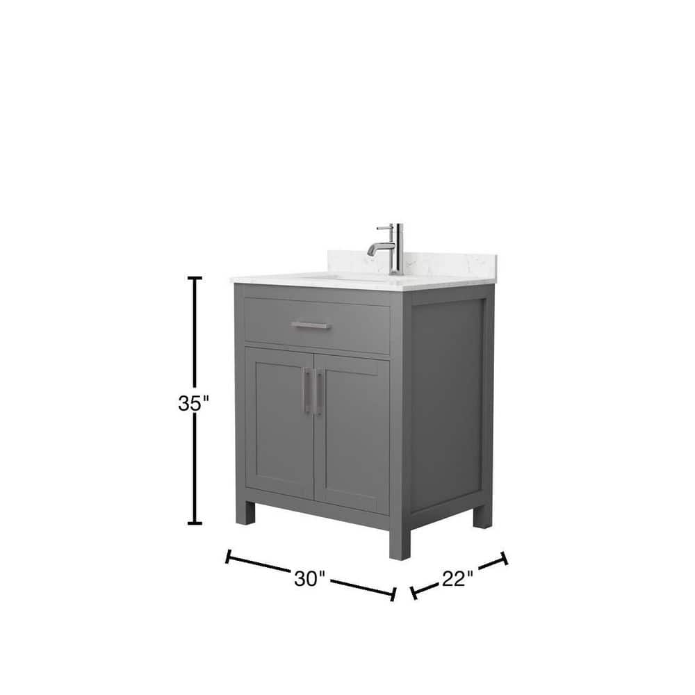 Wyndham Collection Beckett 30" Bathroom Vanity in Dark Gray with Carrara Marble Top