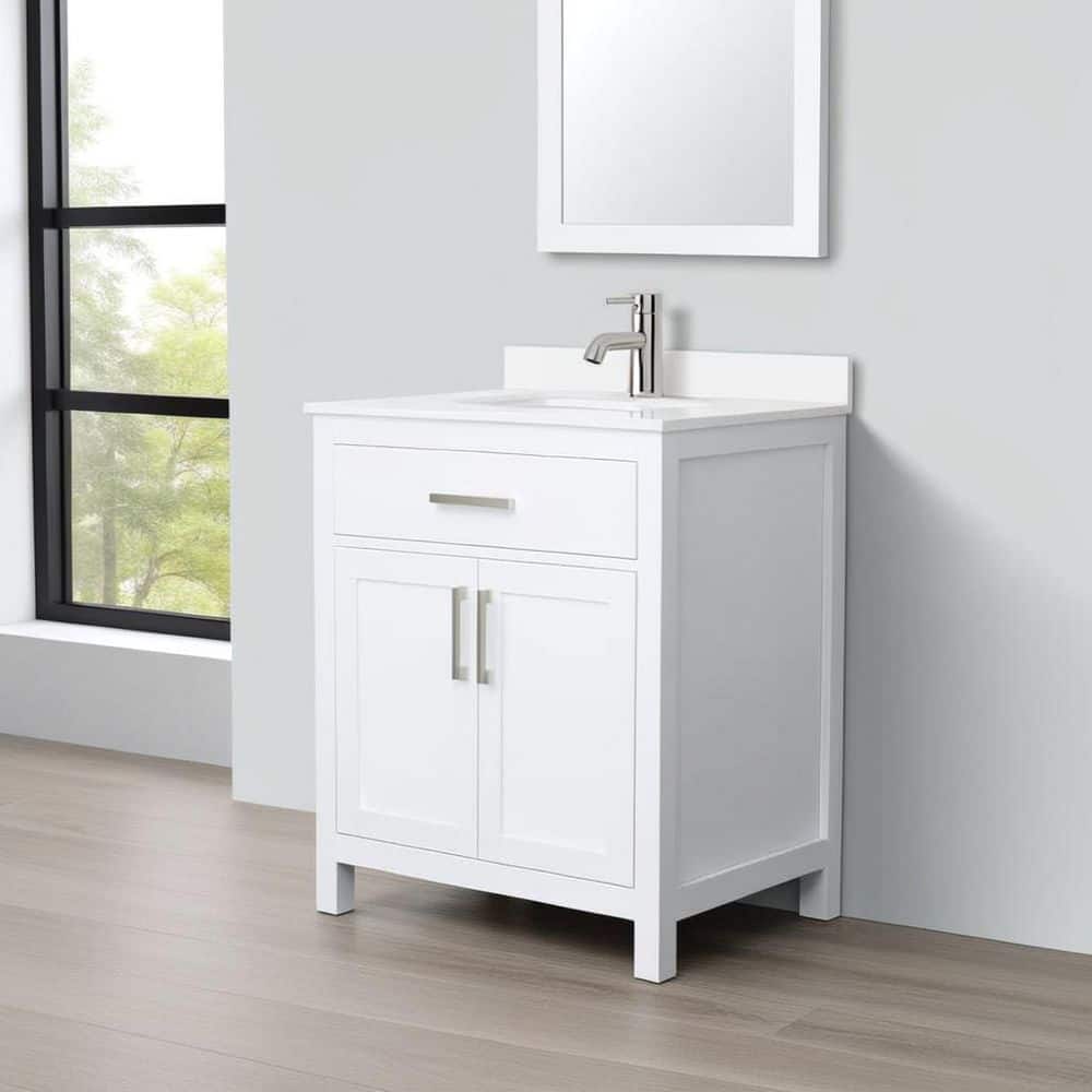 Wyndham Collection Beckett 30" Bathroom Vanity with White Cultured Marble Top