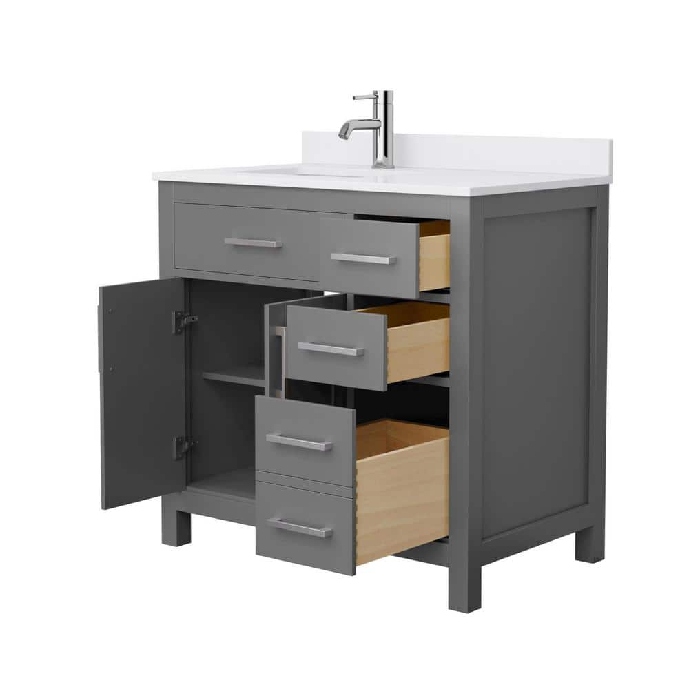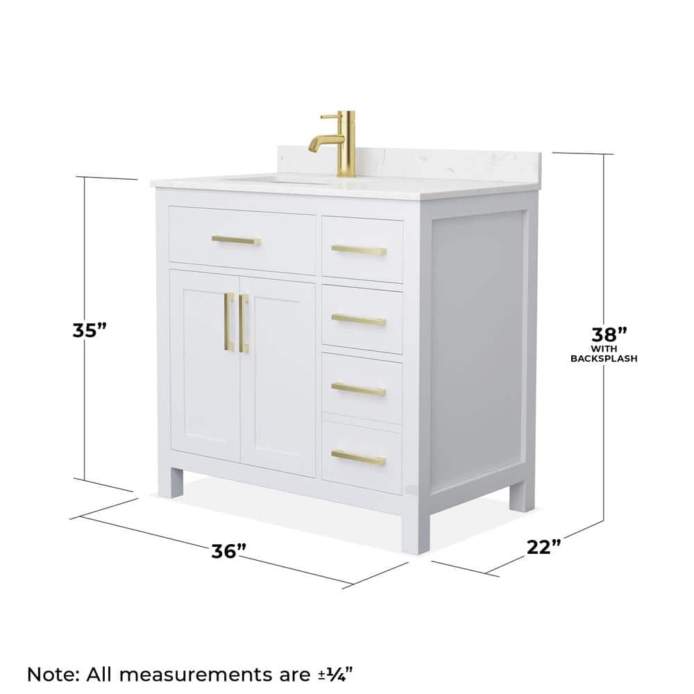The Wyndham Collection Beckett 36" Bathroom Vanity combines timeless design with modern functionality. Featuring a cultured marble top, soft-close drawers, and ample storage, this vanity is perfect for any bathroom upgrade.