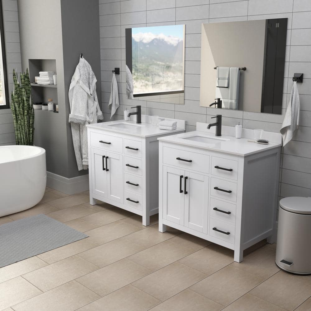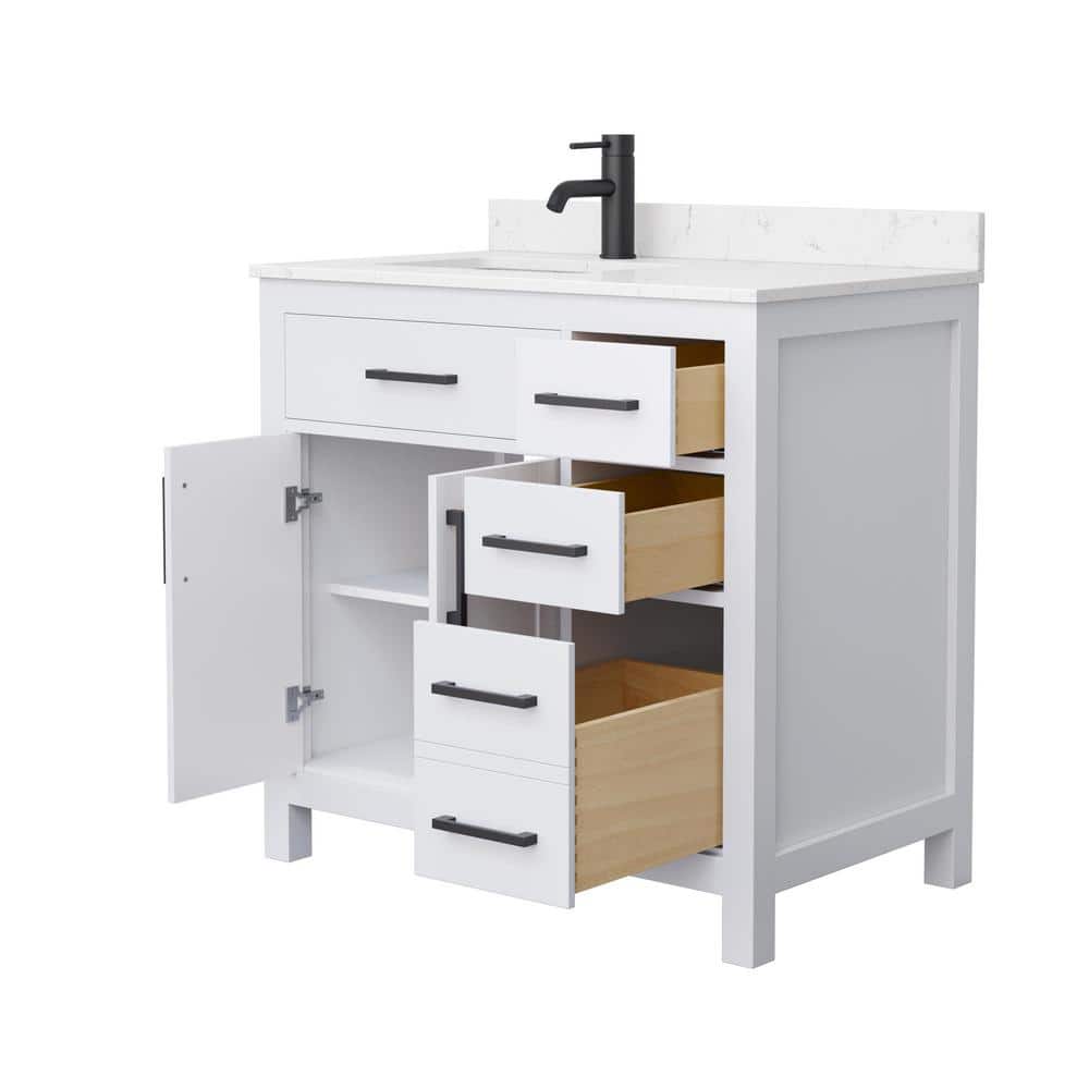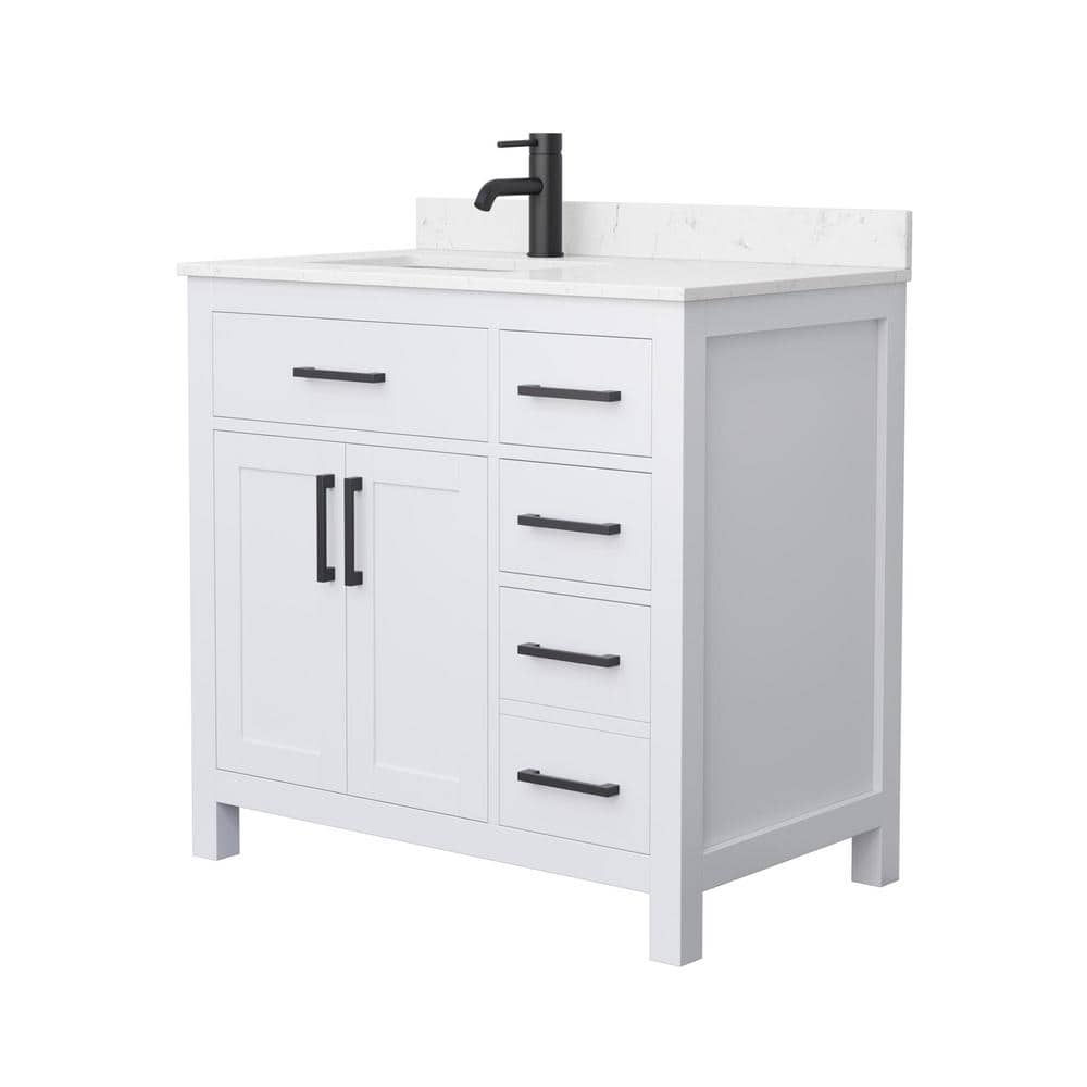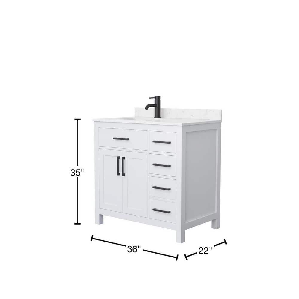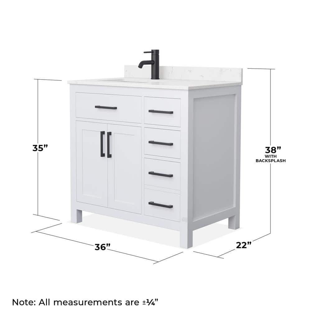 The Wyndham Collection Beckett 36" Single Sink Bathroom Vanity combines timeless design with modern functionality. Featuring a Carrara cultured marble top and a durable wood cabinet, it offers ample storage and a sleek, transitional style.