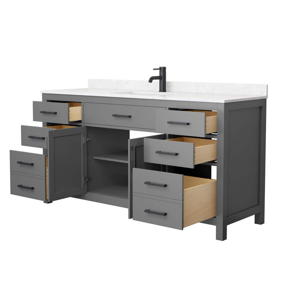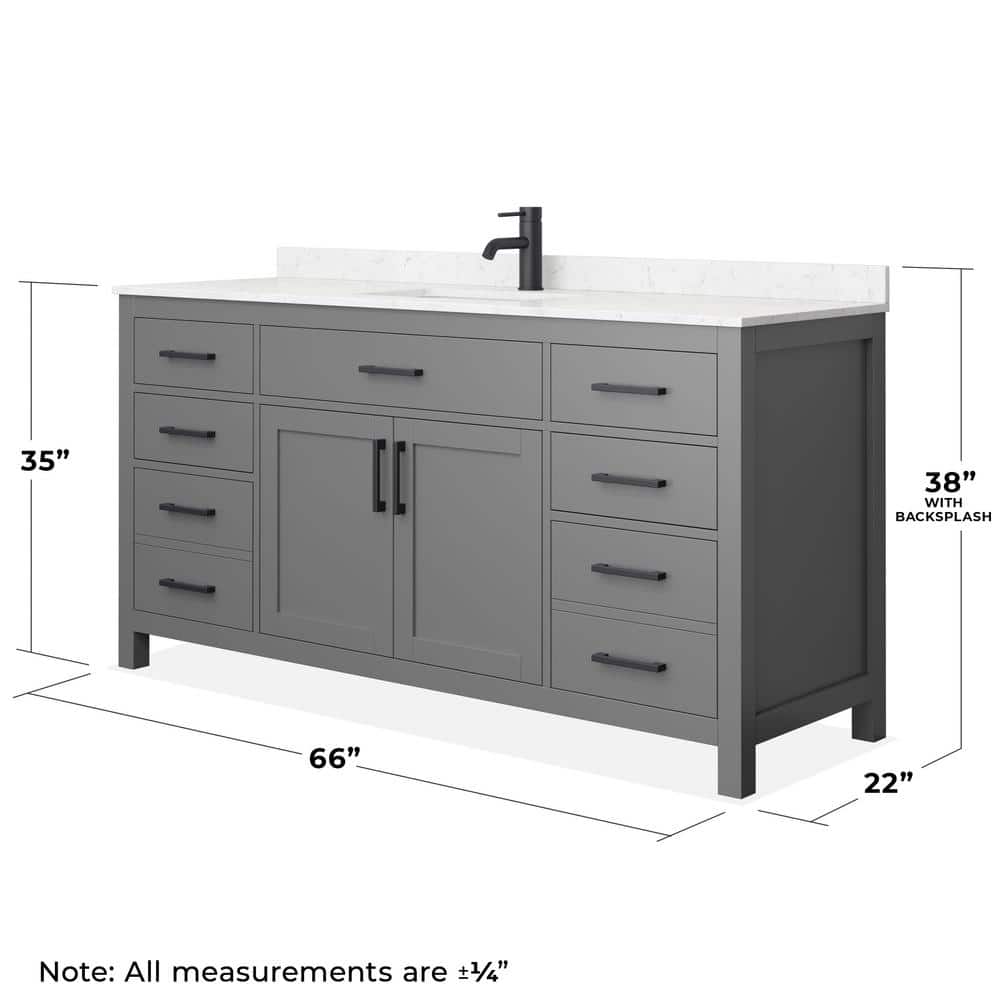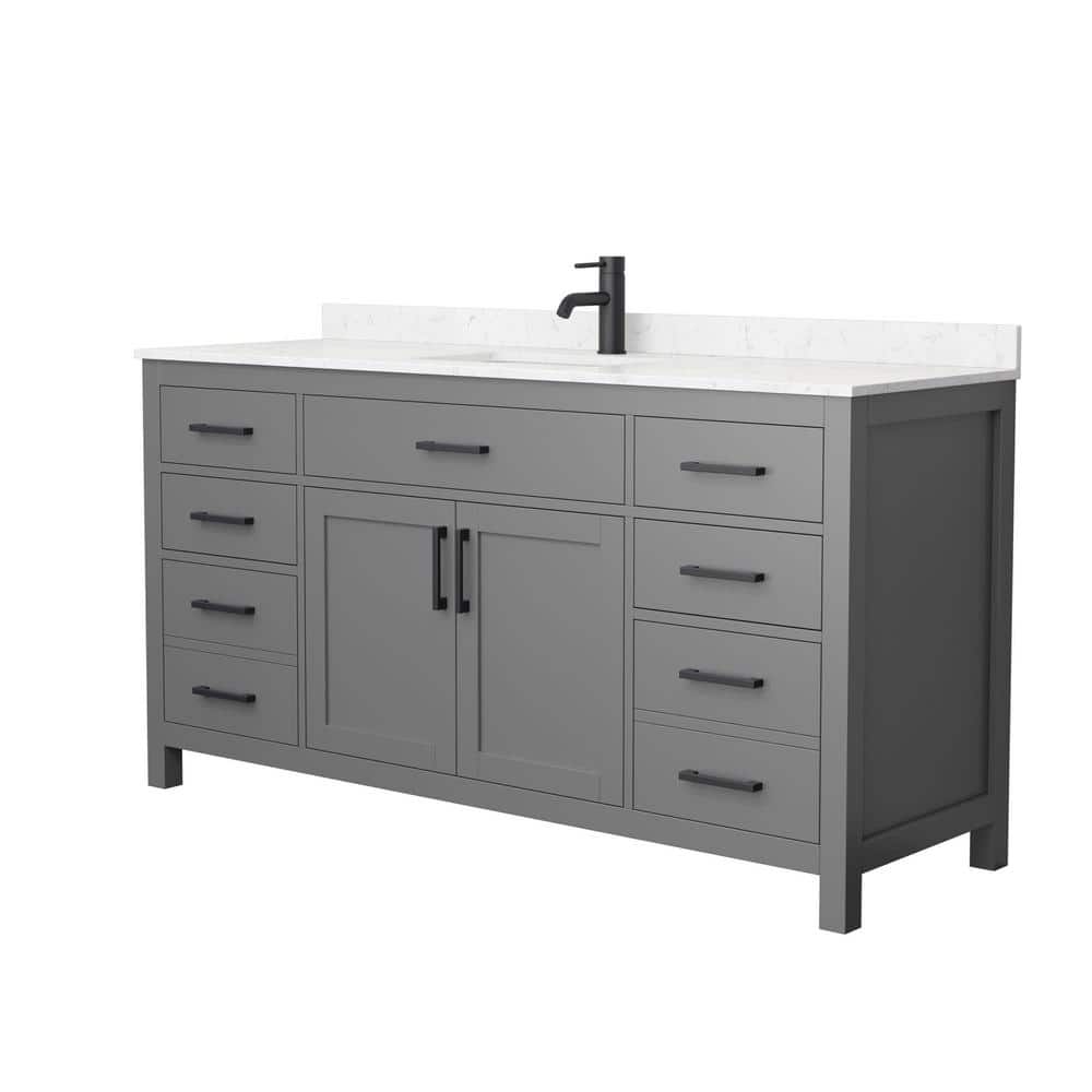 The Wyndham Collection Beckett 66" Single Sink Bathroom Vanity combines timeless design with modern functionality. Featuring a dark gray finish, Carrara cultured marble top, and ample storage, this freestanding vanity is perfect for any bathroom upgrade.