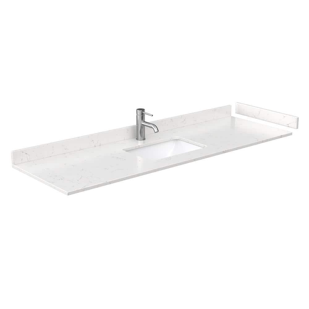 Complete Set: Includes Carrara cultured marble countertop, backsplash, and reversible side splash.