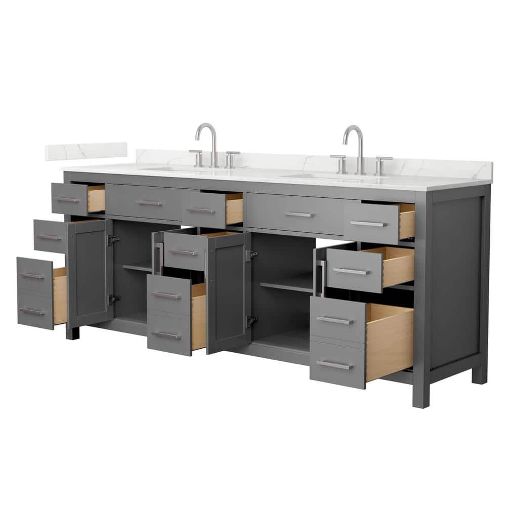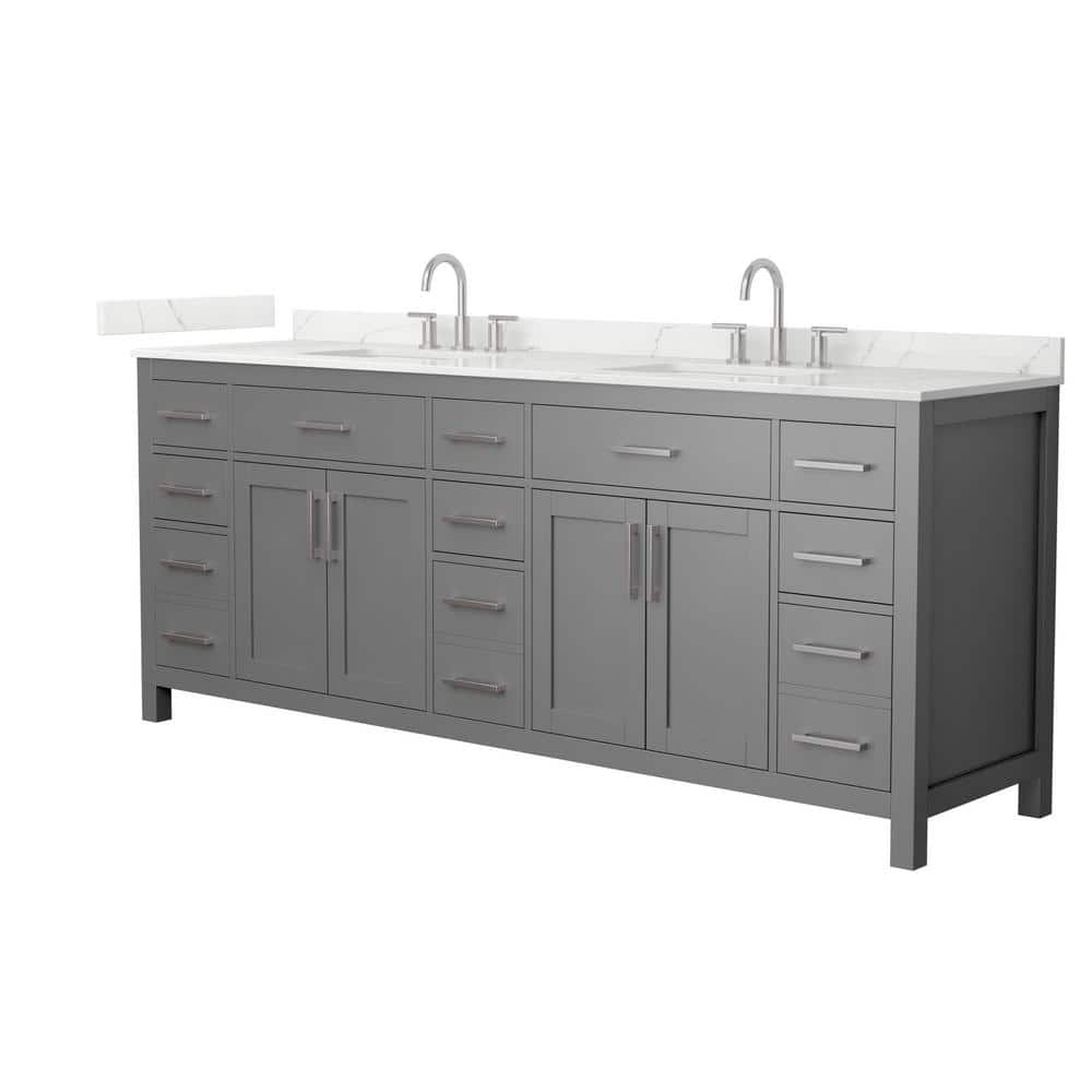 Wyndham Collection Beckett 84 in. Double Freestanding Dark Gray Bath Vanity with Giotto Quartz Top