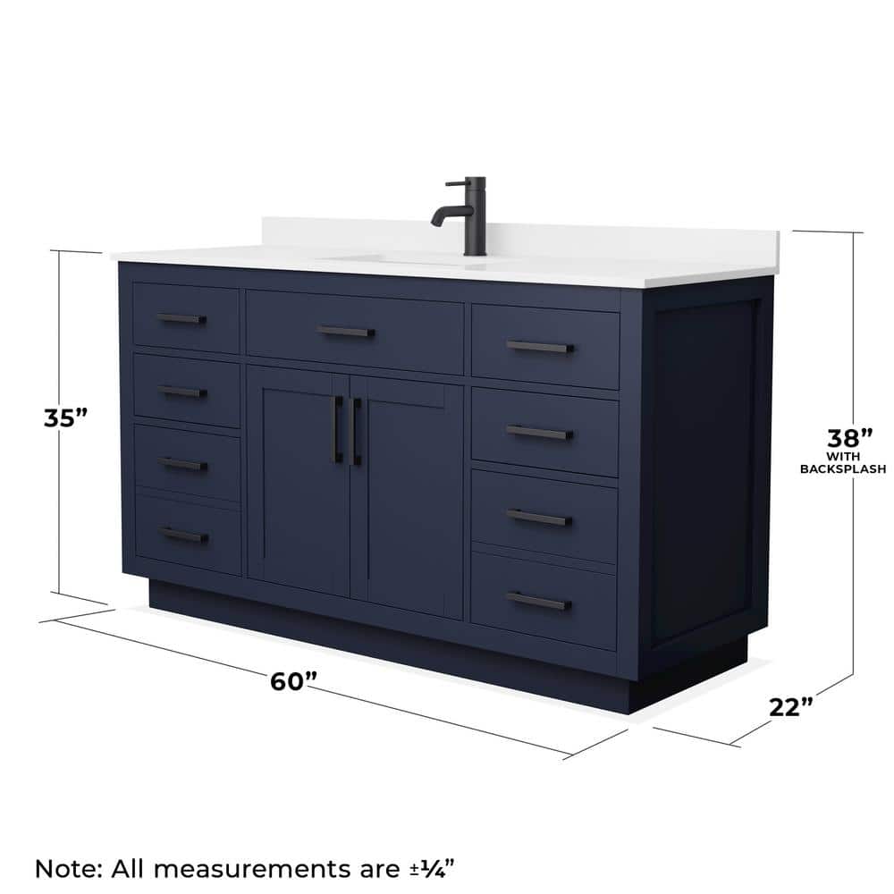 Wyndham Collection Beckett TK 60" Single Bath Vanity in Dark Blue with White Quartz Top