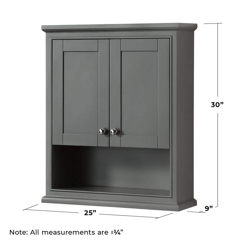 Wyndham Collection Deborah Bathroom Wall Cabinet, Dark Gray, 25x30x9 in.
