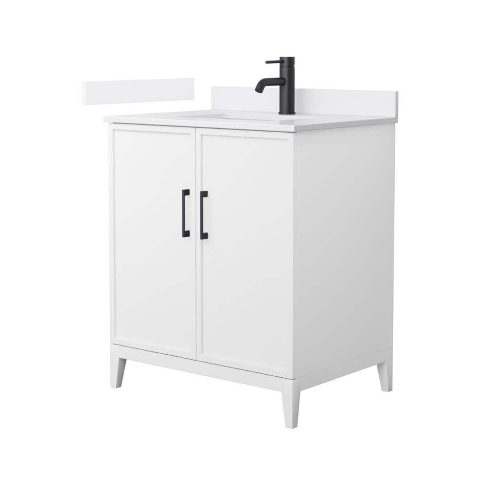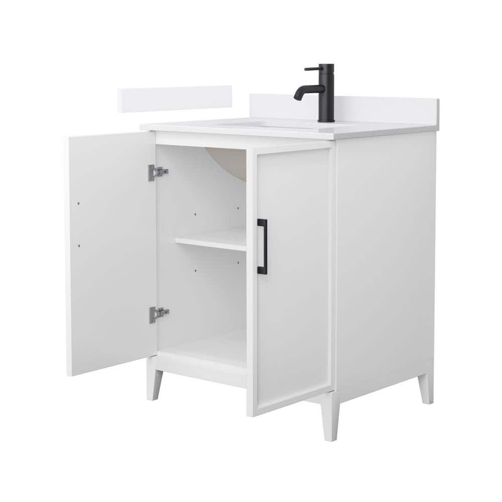 The Wyndham Collection Elan 30" Single Bath Vanity combines sleek design with practical storage. Featuring a white cultured marble top and soft-close doors, it offers a modern aesthetic and ample space for your bathroom essentials.