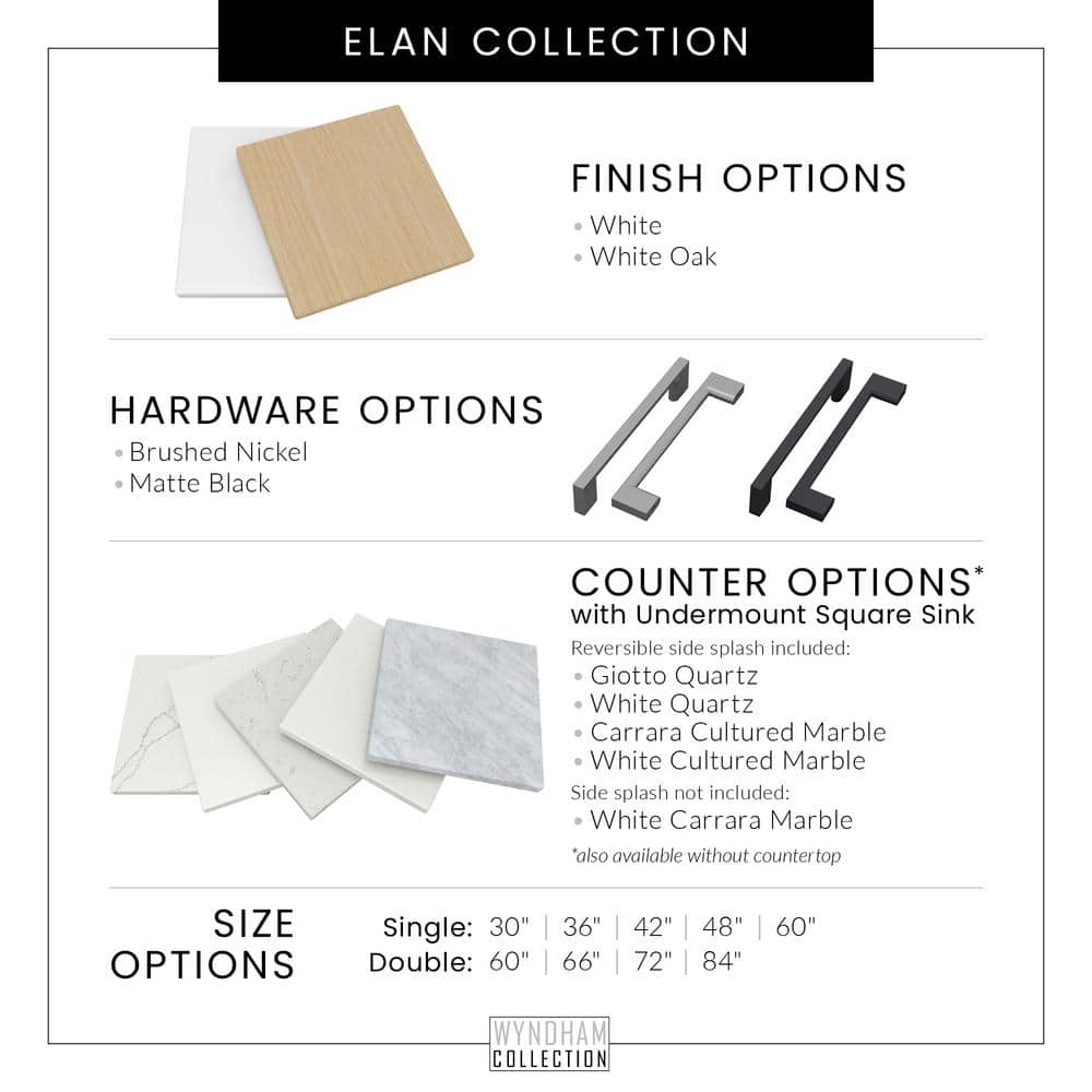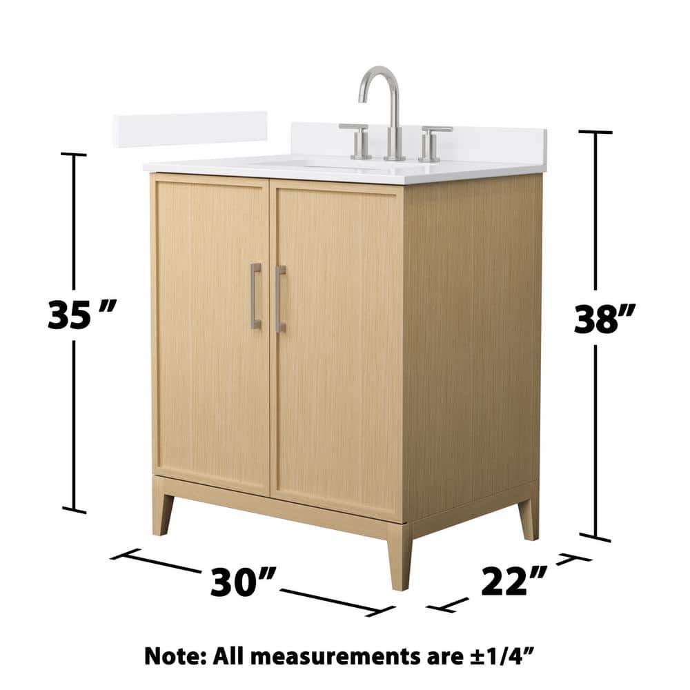 The Wyndham Collection Elan 30" Bath Vanity combines modern design with practical functionality. Featuring a white oak finish and a durable white quartz top, it offers ample storage and a sleek aesthetic for any bathroom.