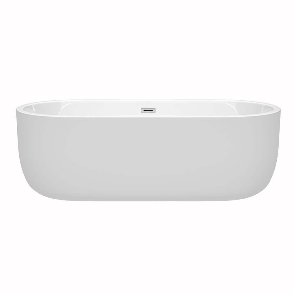 Wyndham Collection Juliette 5.9 ft Acrylic Freestanding Bathtub in White with Chrome Trim