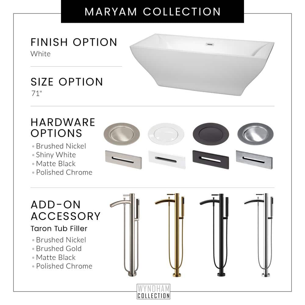 Wyndham Collection Maryam 70.75 in. Acrylic Freestanding Soaking Tub in White with Chrome Trim