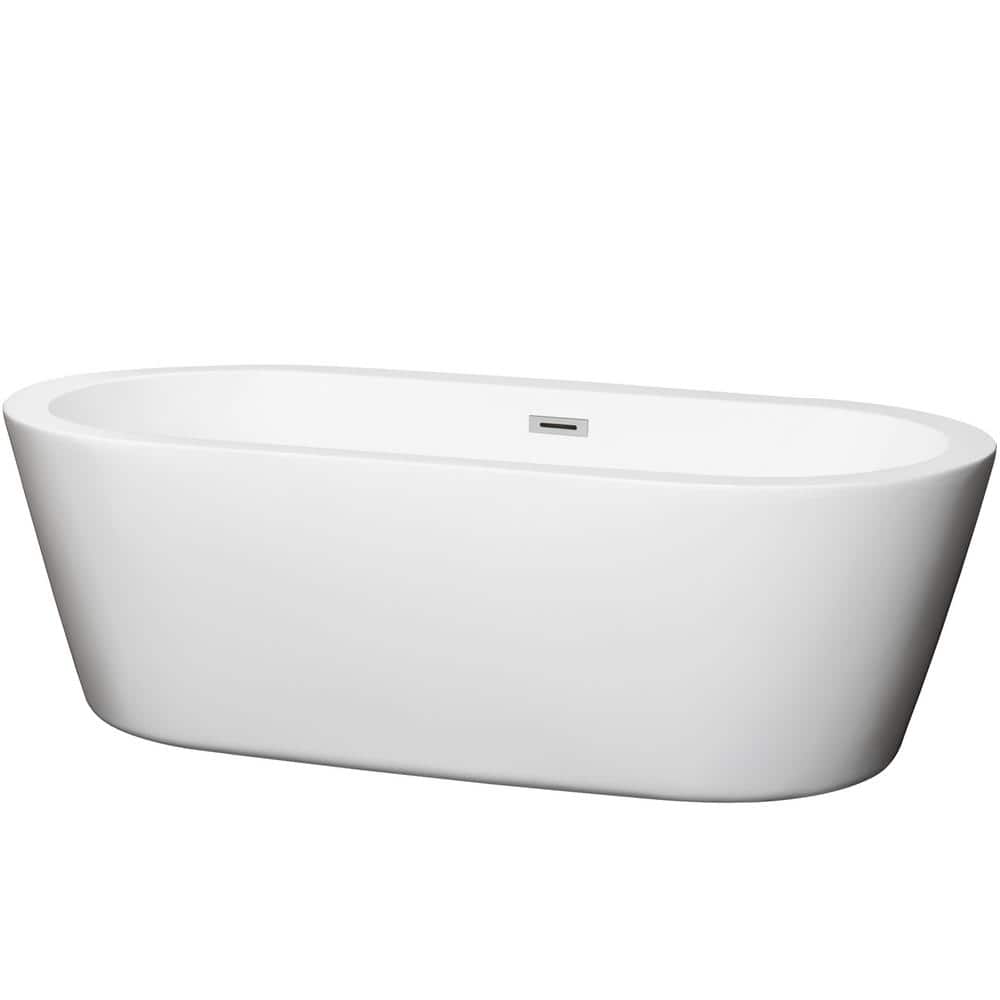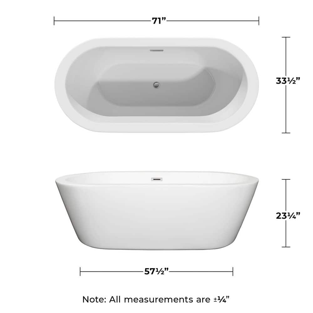 The Wyndham Collection Mermaid 71 in. Acrylic Soaking Tub offers a luxurious bathing experience with its deep soaking depth and durable acrylic construction. Its modern design and polished chrome trim make it a stylish addition to any bathroom.