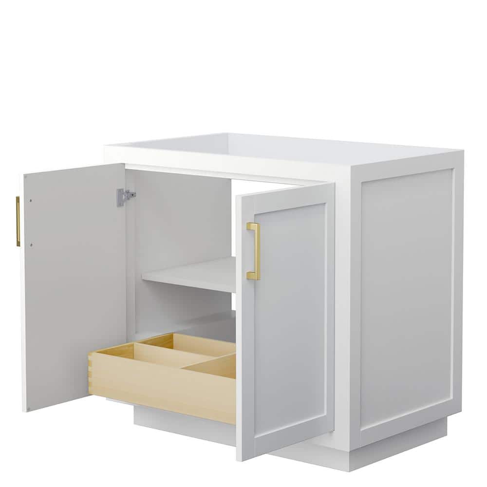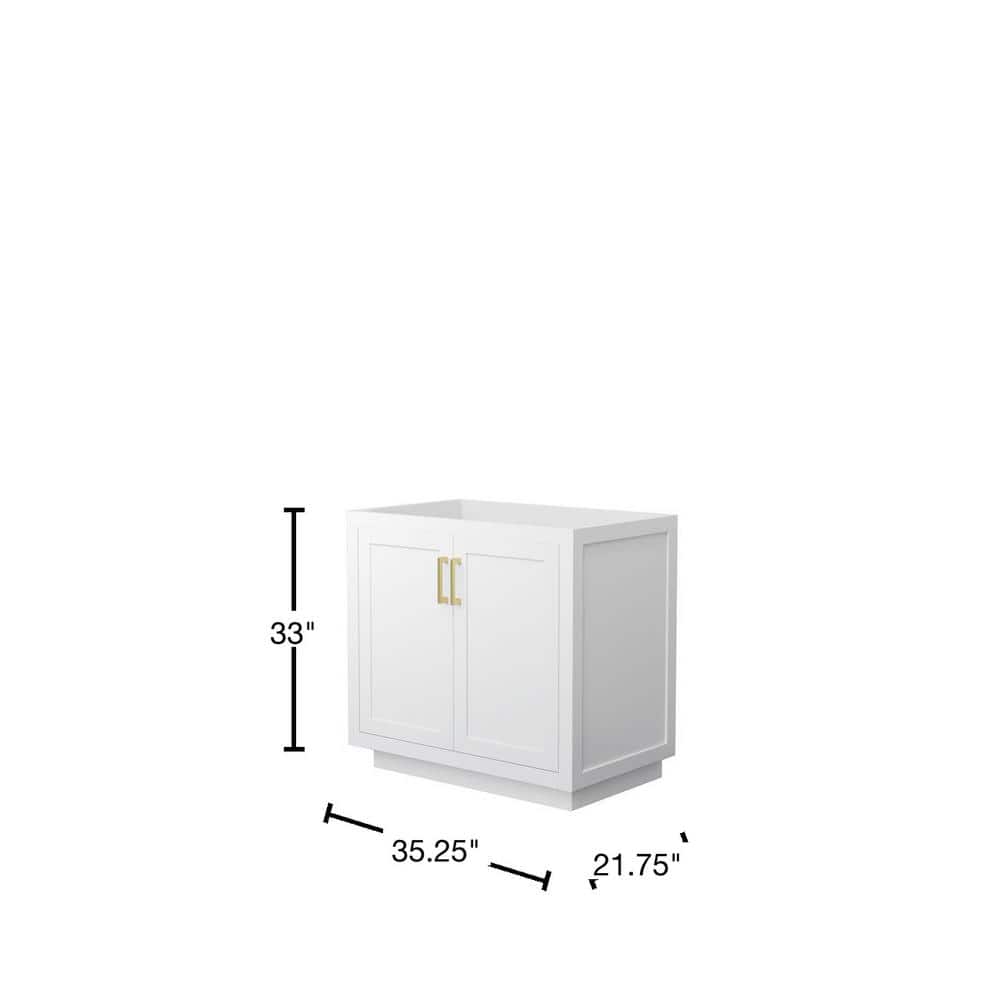 Wyndham Collection Miranda 35.25 in. Single Bath Vanity Cabinet in White with Brushed Gold Trim
