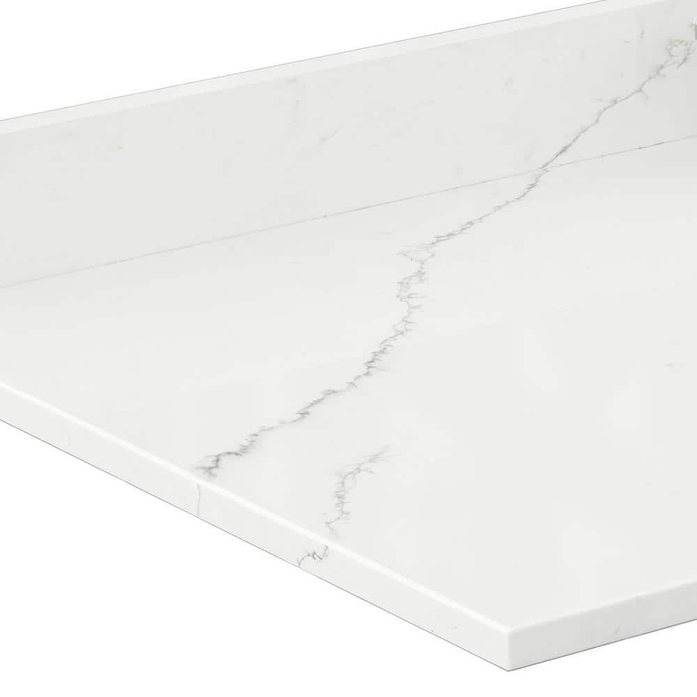 Customers appreciate the elegant design and durable quartz material of this vanity top. Many highlight the convenience of the included backsplash and sidesplash, as well as the easy-to-clean surface. Some users note the importance of verifying compatibility with their existing cabinets before purchase. Overall, the product receives positive feedback for its quality and aesthetic appeal.
