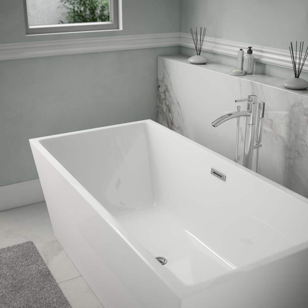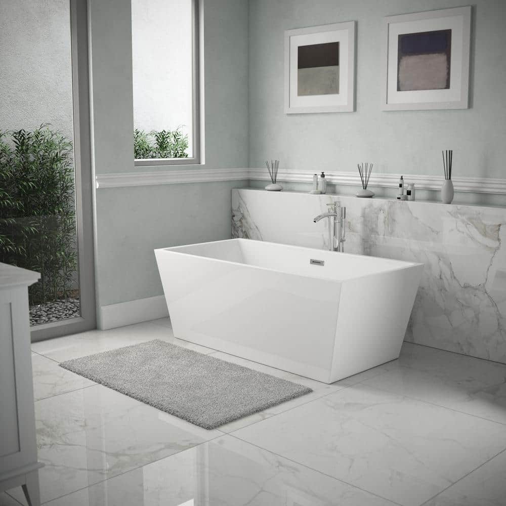 Customers praise the Sara 67 in. Acrylic Soaking Tub for its spacious design and modern aesthetic. Many highlight the deep soaking depth and comfortable contours, making it perfect for relaxation. The lightweight acrylic construction is appreciated for ease of installation, though some users noted that the polished chrome trim requires regular cleaning to maintain its shine. Overall, the tub is highly recommended for its blend of style and functionality.
