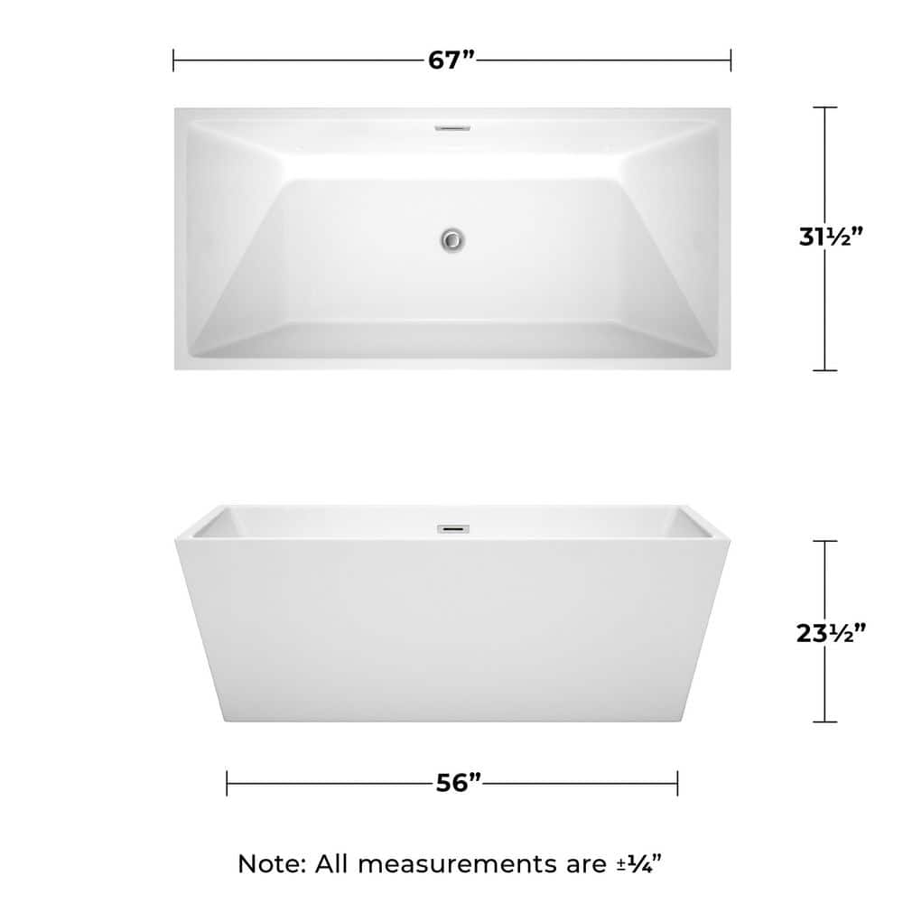 The Wyndham Collection Sara 67 in. Acrylic Soaking Tub combines modern design with comfort. Its freestanding design and durable acrylic construction make it a stylish and practical addition to any bathroom.