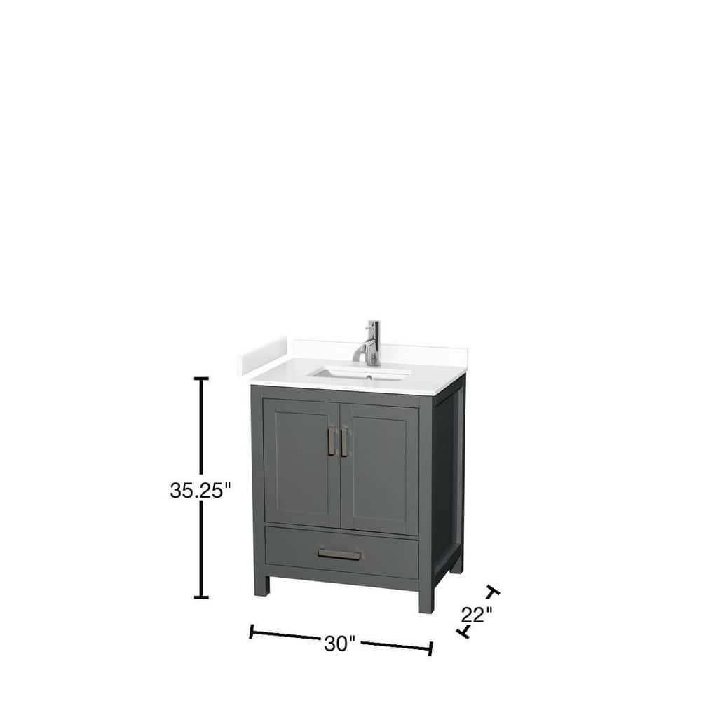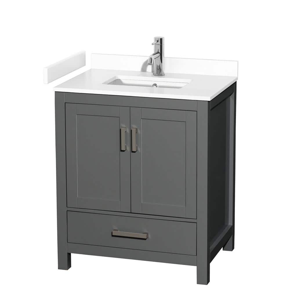 Wyndham Collection Sheffield 30" Dark Gray Single Bath Vanity with White Cultured Marble Top