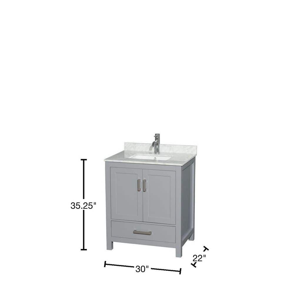 Wyndham Collection Sheffield 30" Gray Bathroom Vanity with White Carrara Marble Top