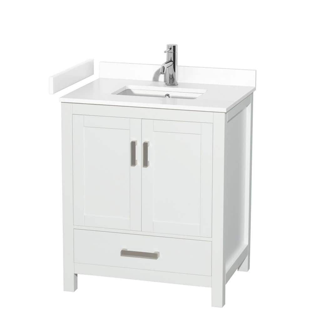 Wyndham Collection Sheffield 30" White Bathroom Vanity with Cultured Marble Top