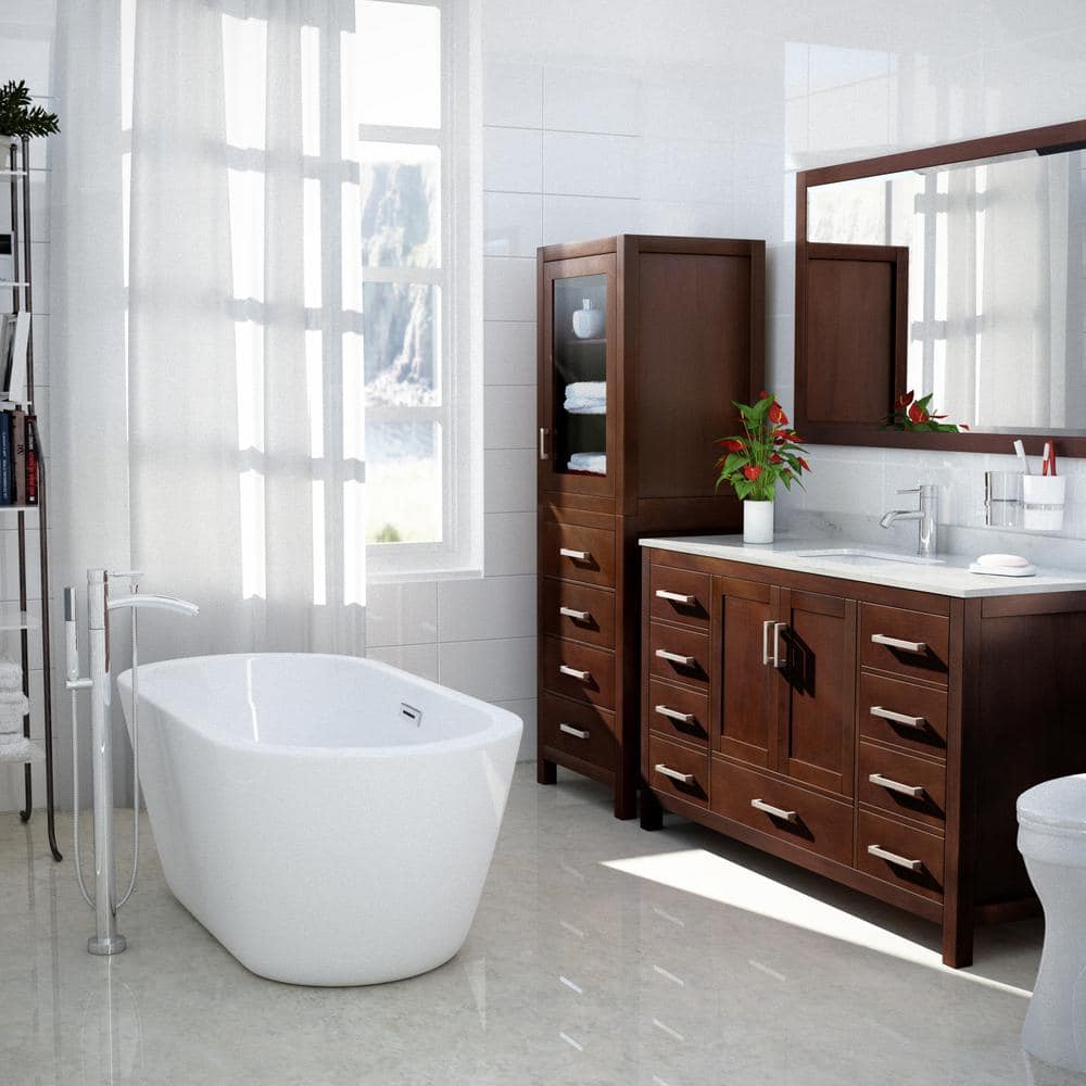 The Sheffield Linen Storage Tower is a masterpiece of transitional design, blending classic charm with modern functionality. Its rich espresso finish and brushed chrome hardware create a sophisticated aesthetic, while the soft-close drawers and doors add a touch of luxury. Perfect for storing towels, toiletries, and more, this freestanding tower transforms your bathroom into a serene retreat. A must-have for those who value both style and practicality.