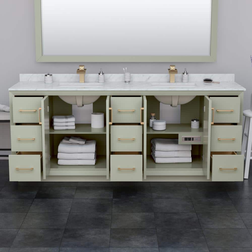 Wyndham Collection Strada 84" Double Bath Vanity, Light Green with White Quartz Top