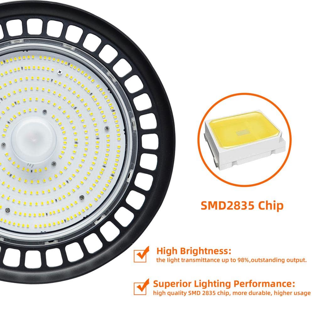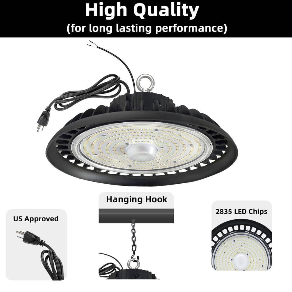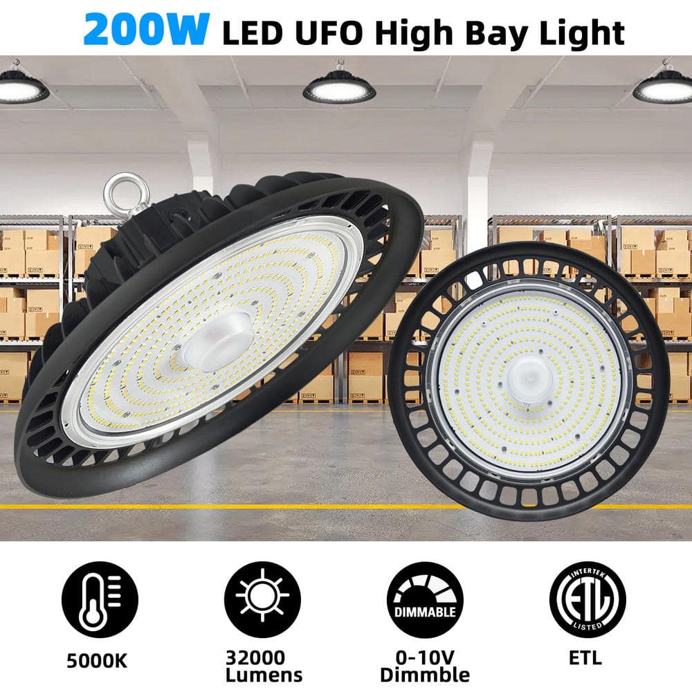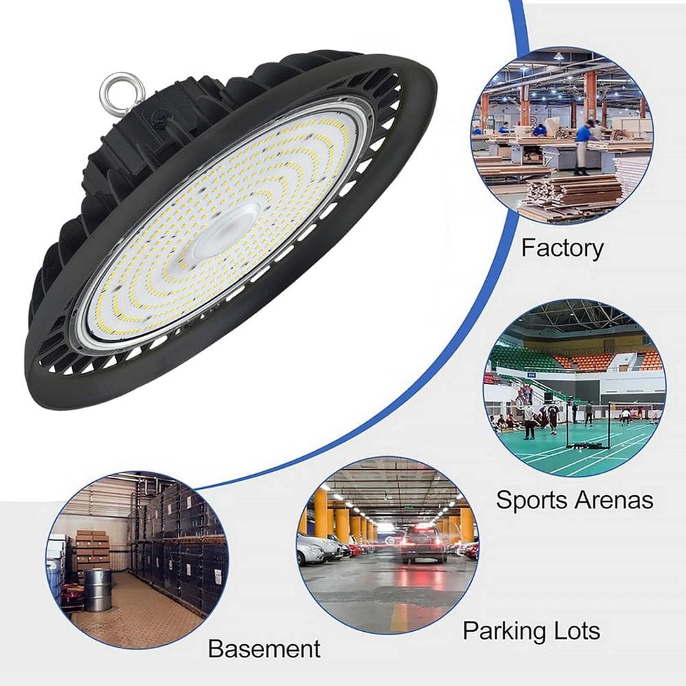 Illuminate large spaces with ease using the WYZM LED UFO High Bay Light. This 600-watt equivalent provides a remarkable 32,000 lumens of daylight brightness, perfectly suited for warehouses, gyms, and industrial applications. Its energy-efficient integrated LED technology, dimmable feature, and rugged design ensure superior performance and longevity.