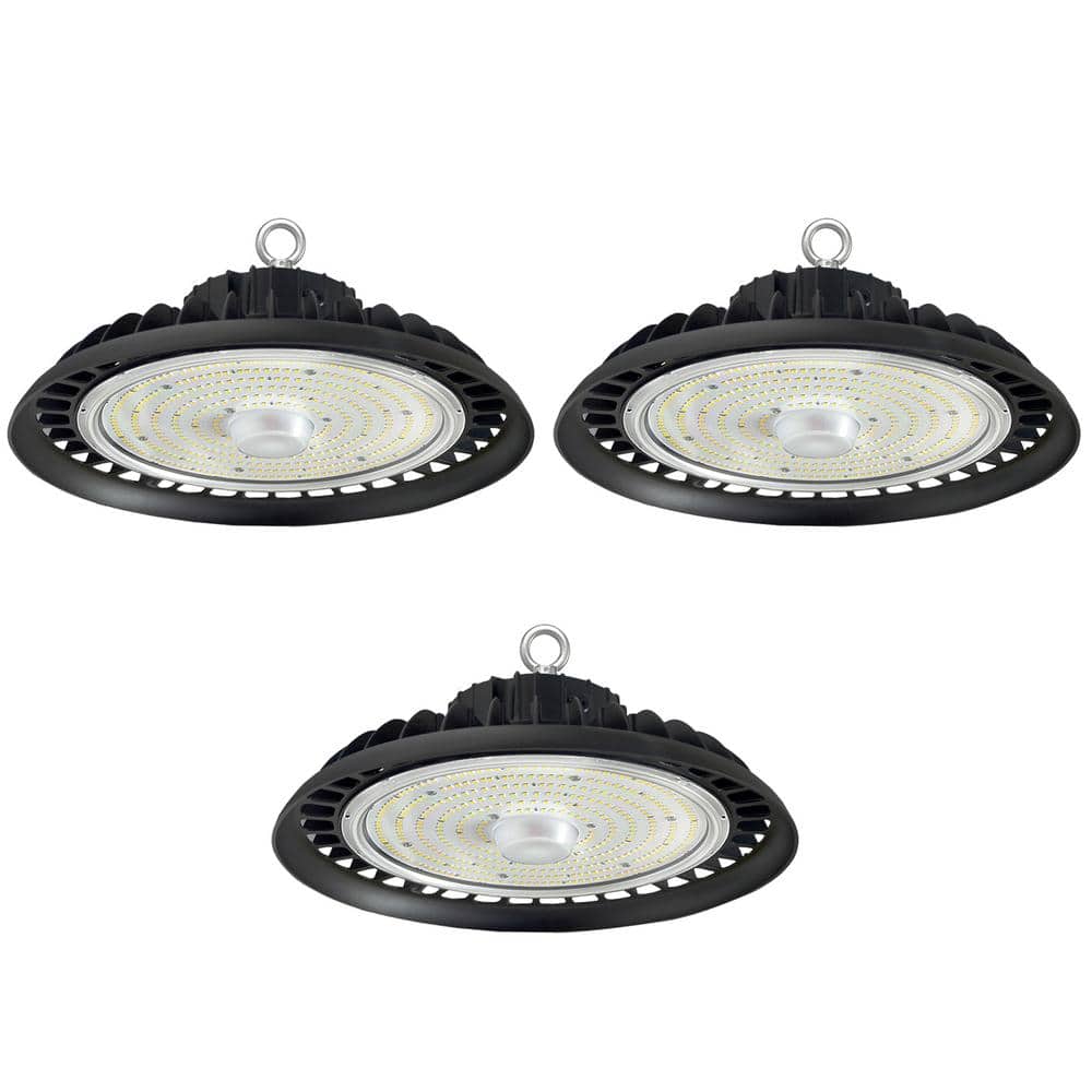 WYZM 12 in. 600-Watt Equivalent Integrated LED Black UFO High Bay Light 5000K Daylight White Dimmable (3Pieces)
