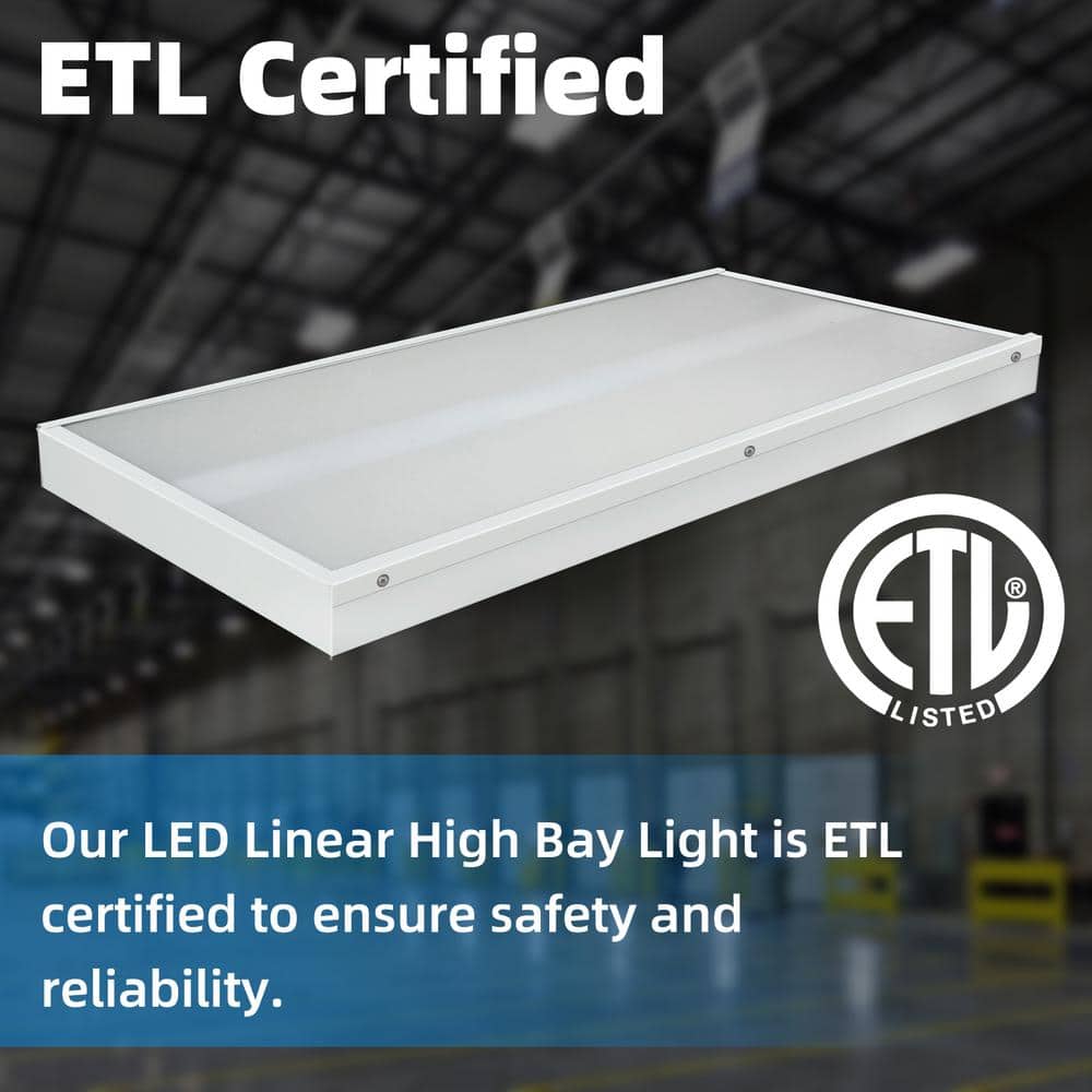 Illuminate your commercial space with the WYZM 2 ft. 400-Watt Equivalent Integrated LED High Bay Light. Delivering 16,000 lumens of bright, efficient lighting, these fixtures are perfect for warehouses and gymnasiums, featuring durable aluminum construction and an impressive 50,000-hour life span.