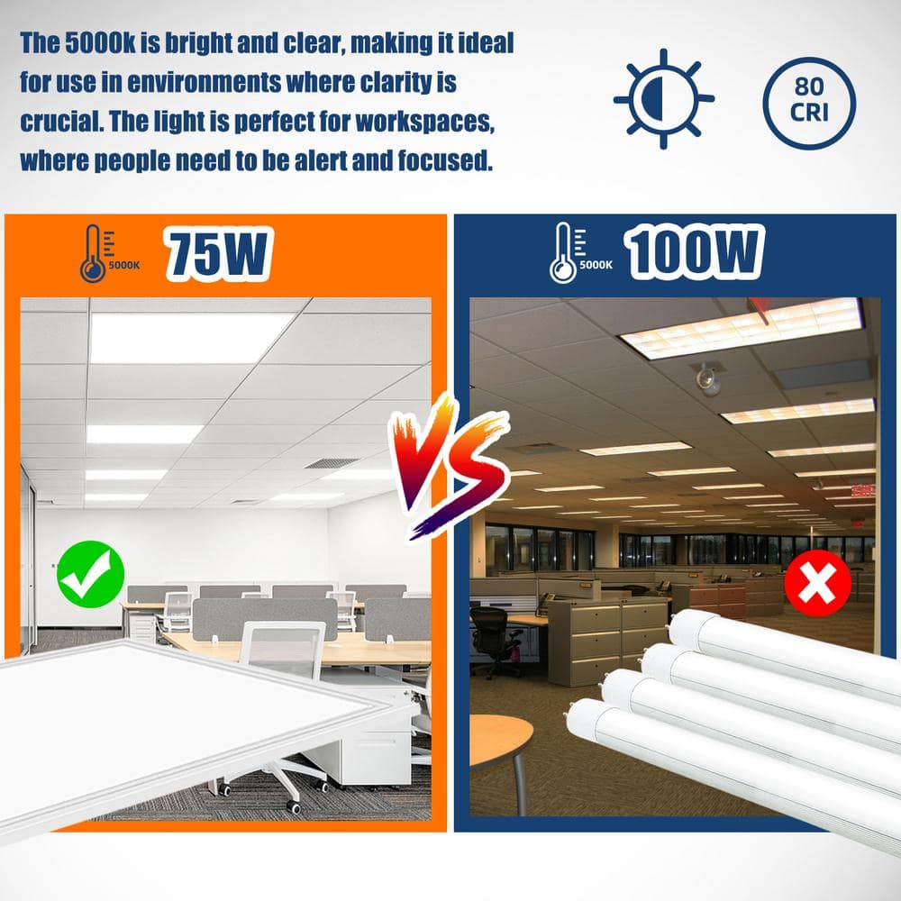Energy Efficiency: Replaces traditional fluorescent tubes with a 75W LED, saving energy and reducing electricity costs.