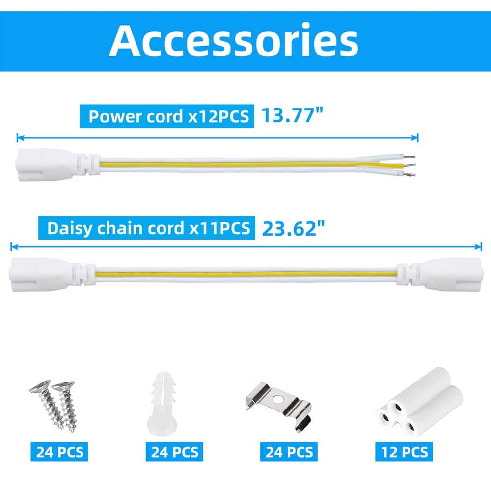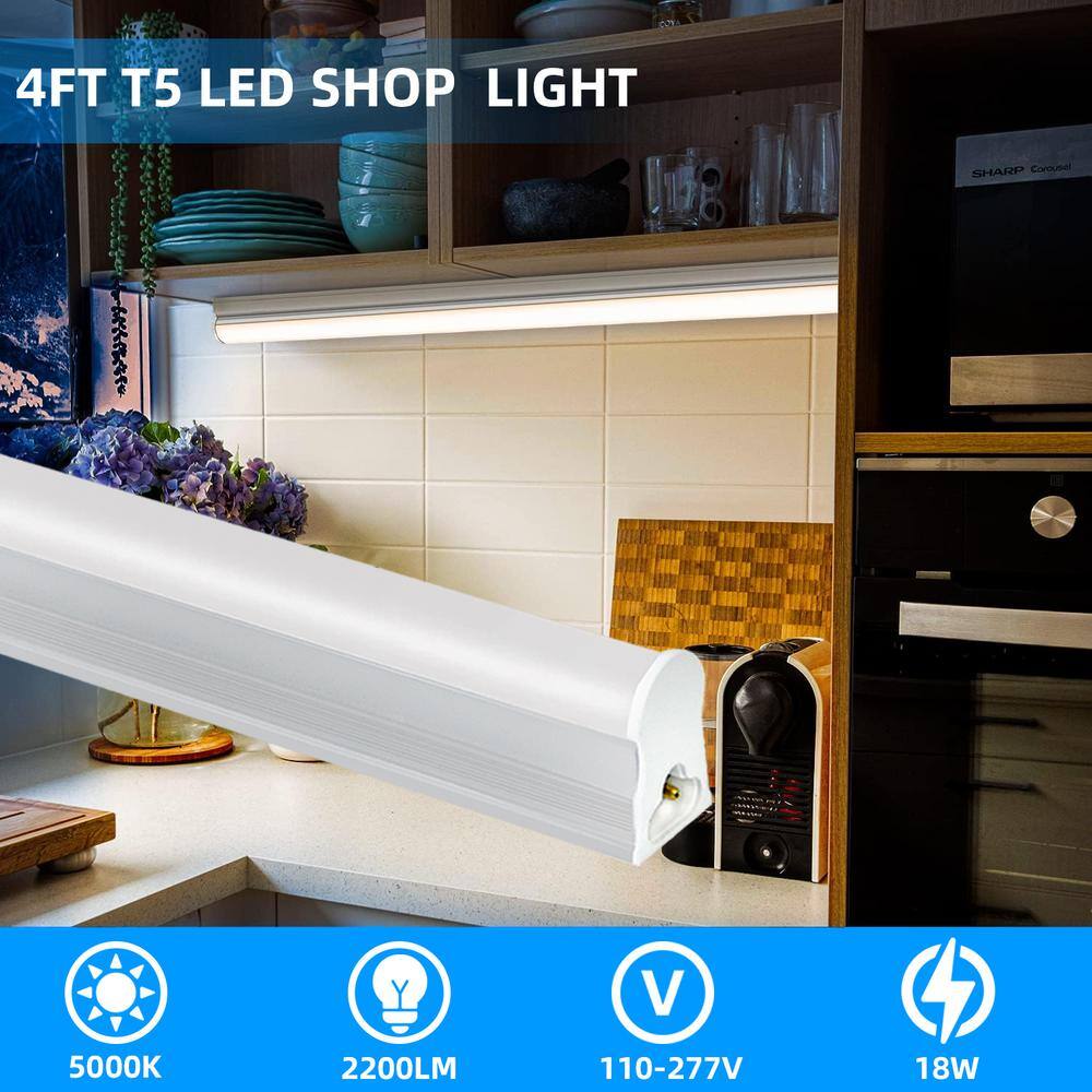 WYZM 4 ft. 80-Watt Equivalent LED T5 Shop Light 5000K Daylight,2200 Lumens,Linkable LED Shop Light(12-Pack)