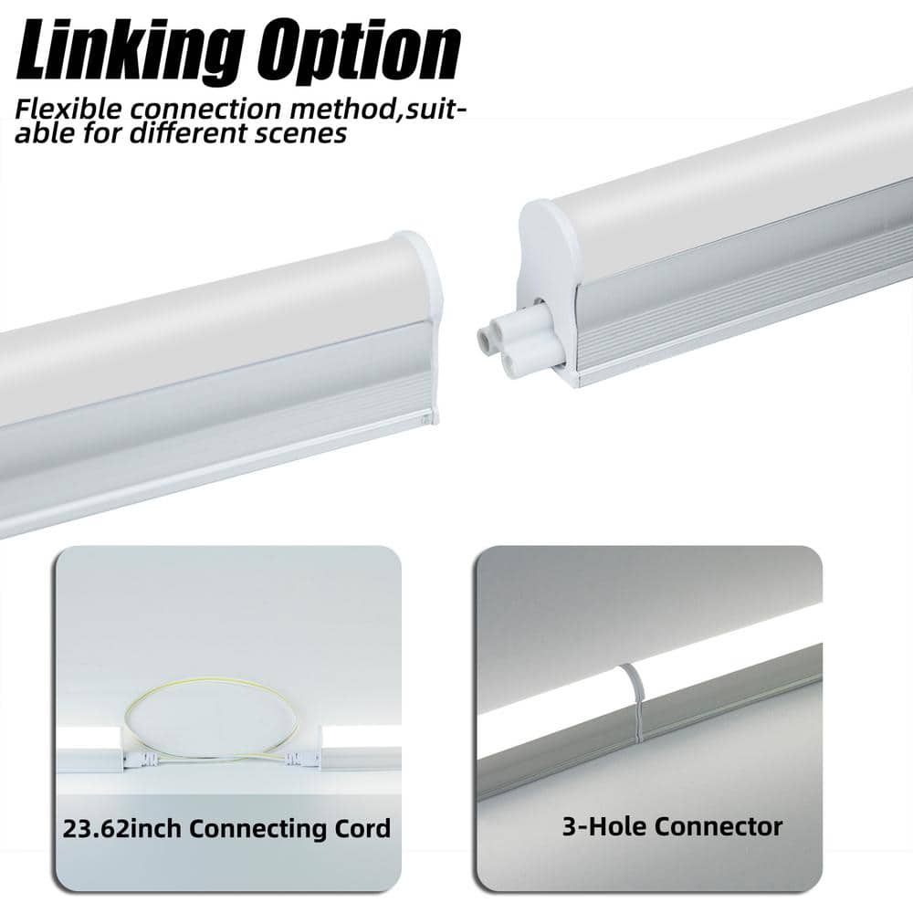 Illuminate your workspace with the energy-efficient WYZM 4 ft. LED T5 Shop Light. These fixtures provide a crisp 5000K daylight brightness with 2200 lumens, ensuring shadow-free lighting ideal for garages, workshops, and other commercial spaces. The linkable feature allows seamless expansion for larger areas, making it a versatile choice for various interior settings.