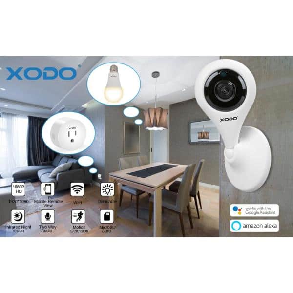 Xodo Smart Home Security Surveillance Kit with 1080p Camera, 60-Watts Smart Bulb,Smart Home Plug, App Controlled,Easy install