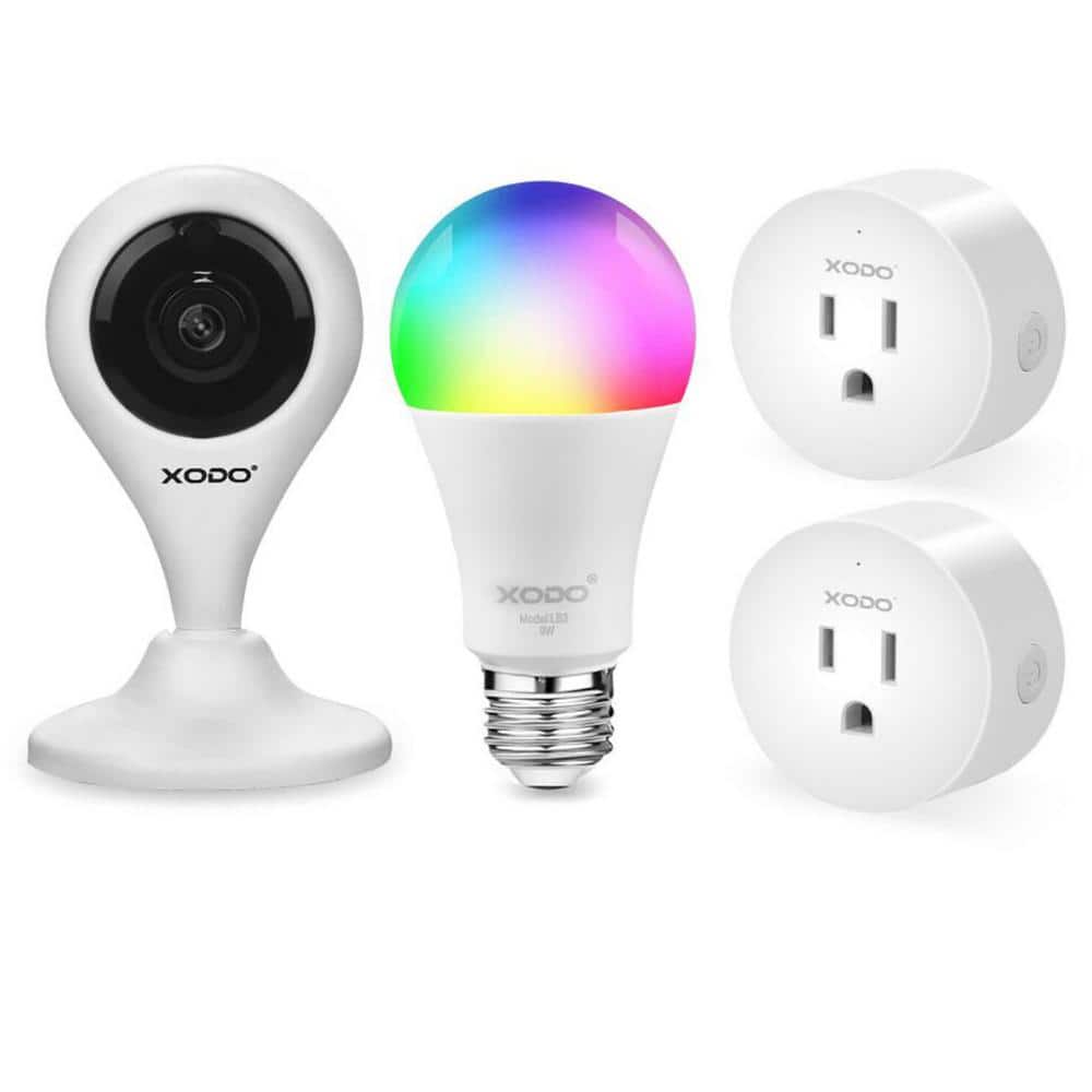 Elevate your home security with the Xodo Smart Home Surveillance Kit. Featuring a high-definition 1080p camera, a vibrant multi-color smart bulb, and versatile smart plugs, this kit offers comprehensive control and protection through the user-friendly Xodo app. It's your all-in-one solution for a safer, smarter home.