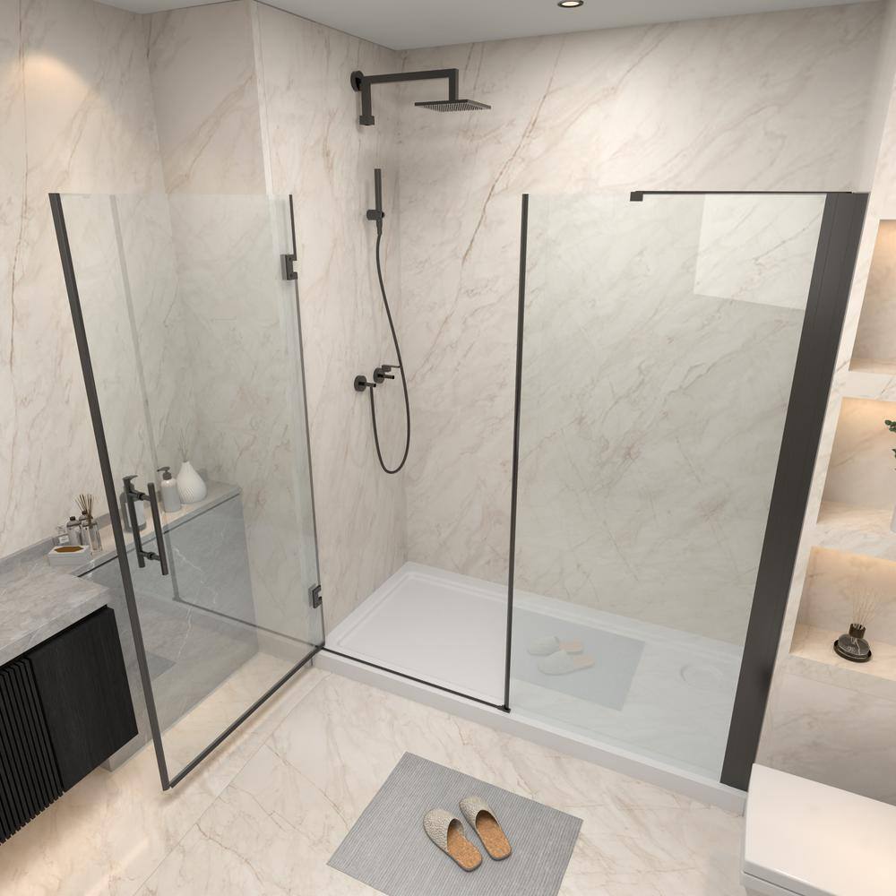 The Victoria shower door isn't just a fixture—it's a transformation for your bathroom. With its sleek matte black finish and robust glass structure, it redefines elegance in your shower space. The frameless design seems to dissolve into the room, creating an illusion of openness and luxury. Pair it with rich, marbled tiles and gold accents to craft a regal bathing retreat, where every shower feels indulgently refreshing. This door is more than a barrier; it's a gateway to a tranquil, sophisticated oasis of relaxation.