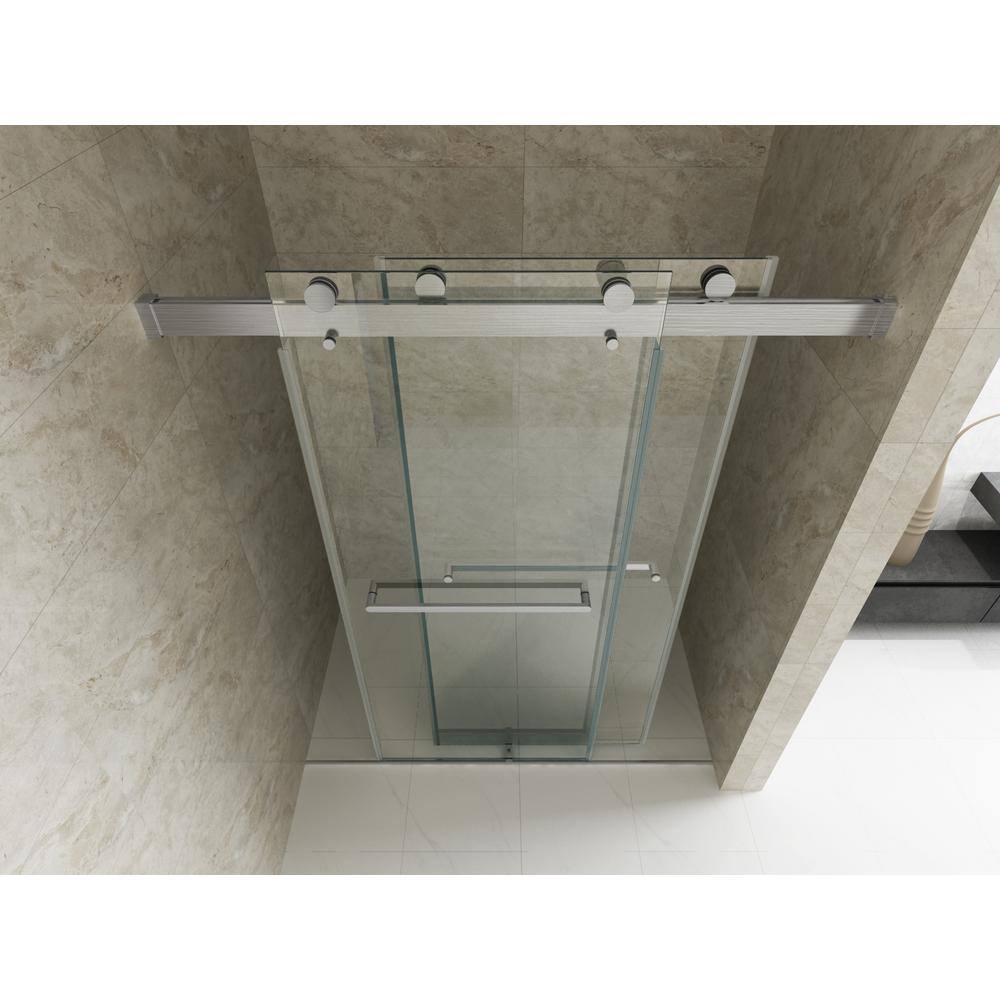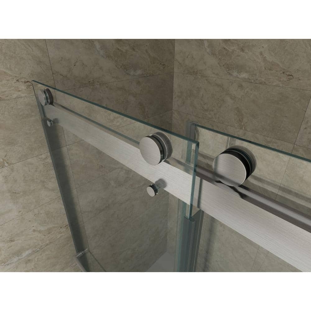 Xzkai 60.1 in. W x 76 in. H Sliding Frameless Shower Door with Tempered Glass, Brushed Nickel