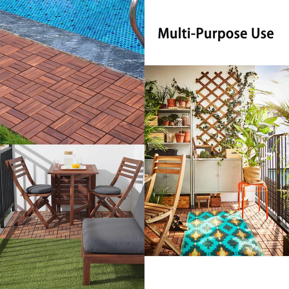 YOFE Brown Acacia Wood Interlocking Deck Tiles