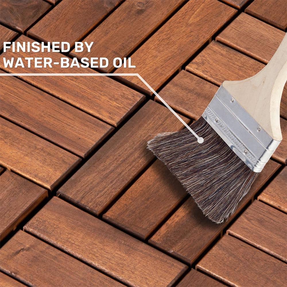 YOFE Brown Acacia Wood 3/4 in. T x 12 in. W Solid Hardwood Flooring Interlocking Deck Tiles - Checker Pattern(20 sqft/case)