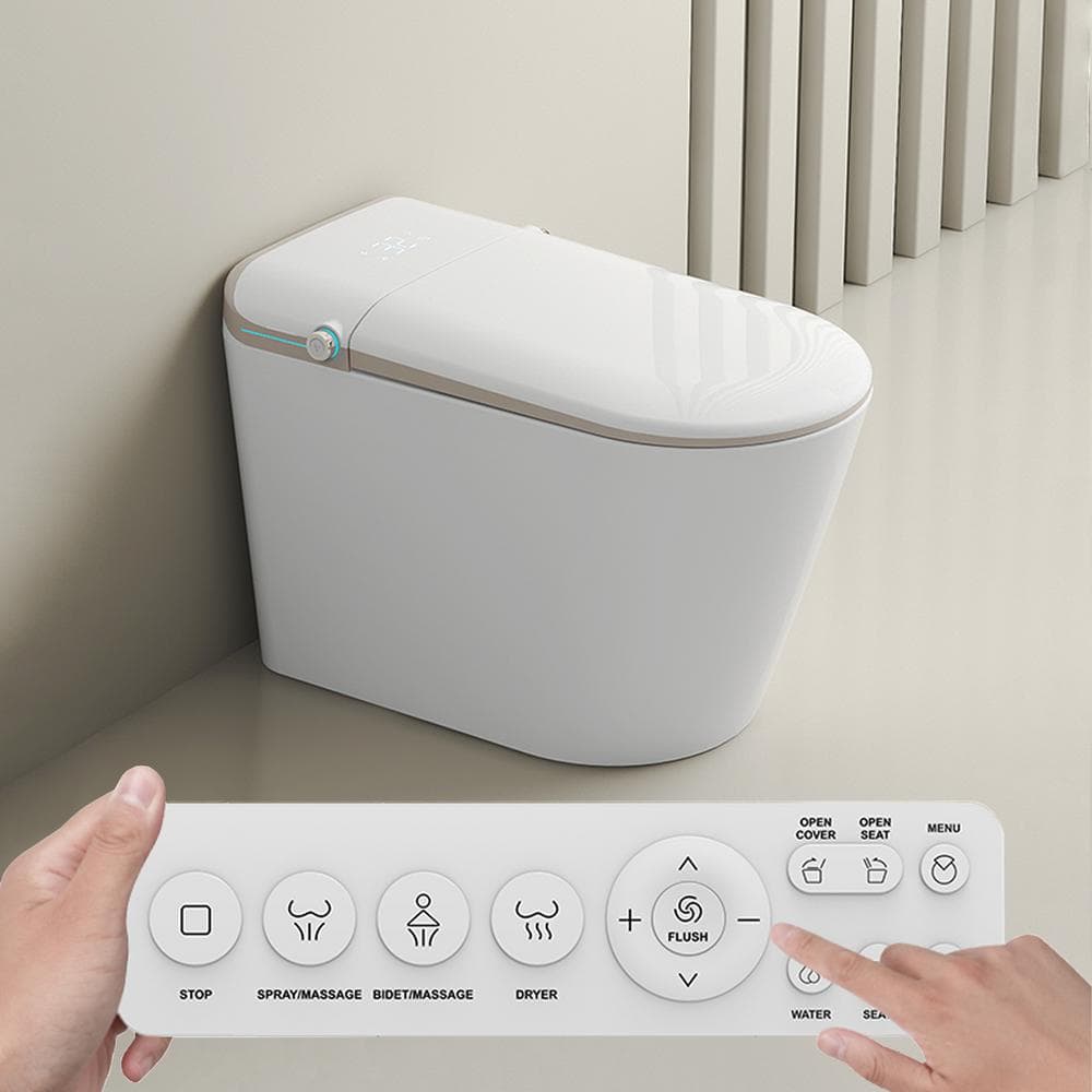 Elevate your bathroom experience with the Yulika DJ-U2 One Piece Bidet Toilet. This advanced smart toilet features a dynamically powerful swirling siphon flush system, a heated seat, and a range of customizable settings including water temperature and night lighting. Control all functions effortlessly with an intuitive remote or convenient foot sensors.