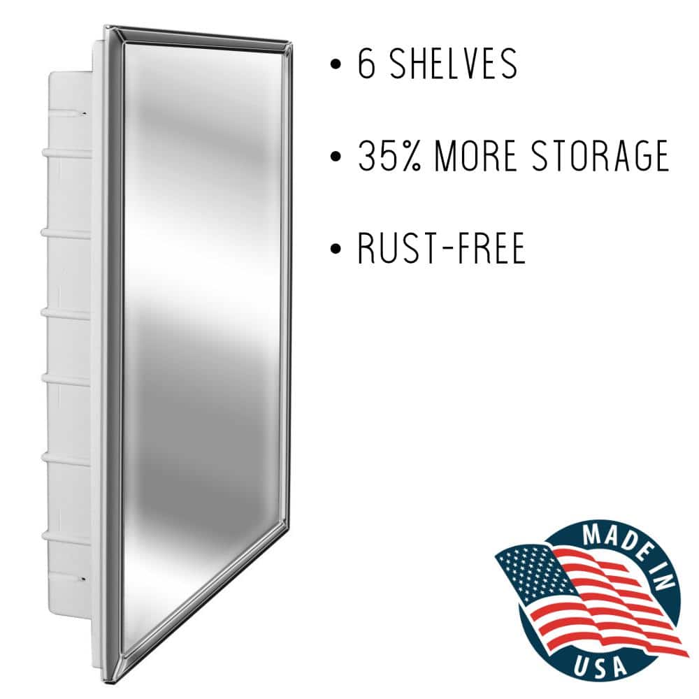 Chrome Framed Recessed Medicine Cabinet with 6 Shelves