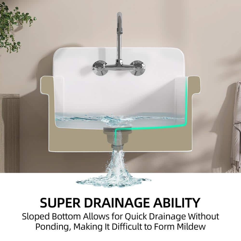 Embrace the chic utility of Zeafive's 24'' Farmhouse Utility Sink, a perfect marriage of form and function for the modern home. Its pristine white ceramic finish adds a touch of refinement to the raw authenticity of utility spaces, setting a sophisticated tone. The high backsplash and sleek design lines make it a standout focal point, while ensuring practicality with easy-to-clean surfaces. Ideal when styled in combination with brushed steel fixtures or natural wood accents—this sink becomes an exquisite emblem of functional luxury.