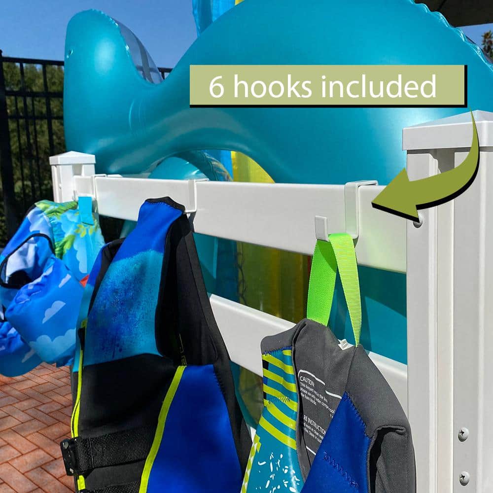 • Spacious Design: Accommodates large pool rafts, noodles, and toys, with additional hooks for towels.